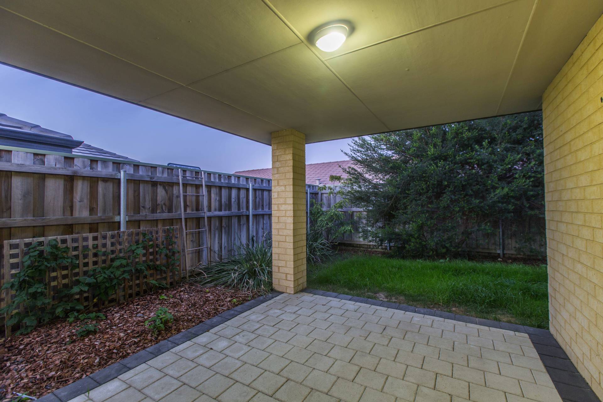 The backyard is neat & low maintenance with the alfresco under the main roof. If you insist on having something to do then maybe add café blinds to suit all seasons outdoor living.