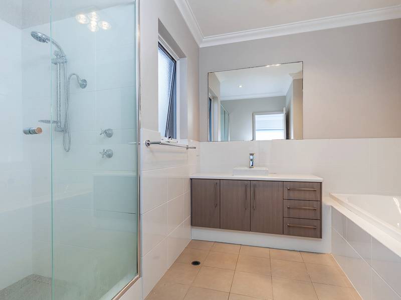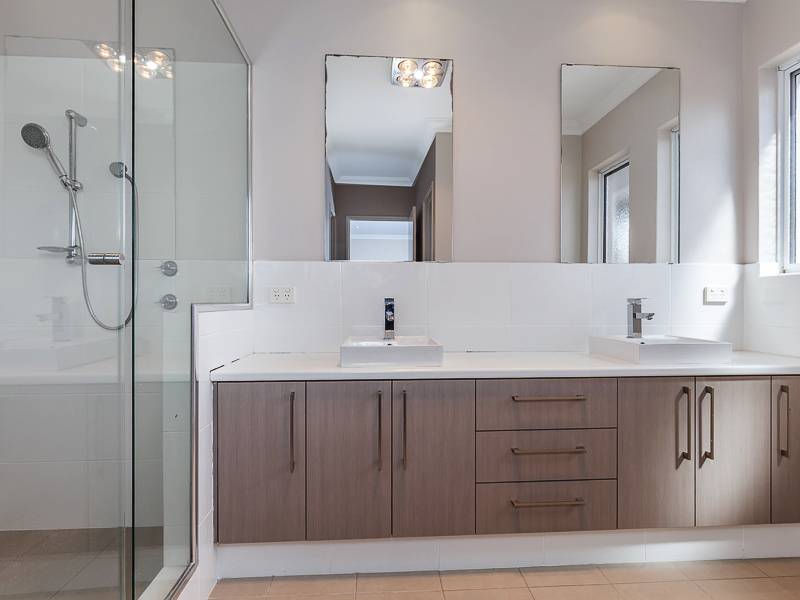Features include a large open plan living area, separate private theatre room, three large bedrooms with built in robes + master bedroom with split system air-con and large walk-in robe, spacious upstairs landing for formal seating area, kids area or study. Two bathrooms with extra-large showers, bath in main bathroom and ensuite with his & hers vanities, separate toilet/powder room, stylish modern kitchen with stone benches, plenty of cupboard space, pendent lighting and stainless steel appliances including gas cooking.