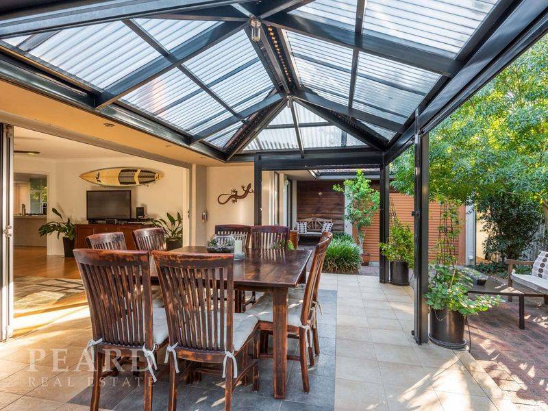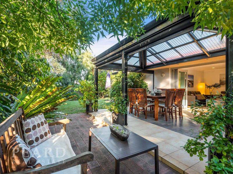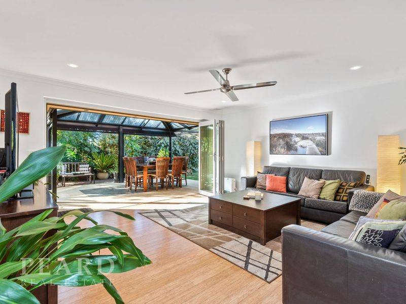 The extra-big more formal living area features a timeless and efficient Heat from fireplace where you can soak up the joy of a crackling wood fire on those chilly winter nights, whilst the wide open plan family living area is on view from the huge renovated kitchen. This living area like the other is filled with warm winter sun and opens seamlessly to a protected all-weather pitched alfresco style patio with adjustable weather blinds nestled in private peaceful gardens.
