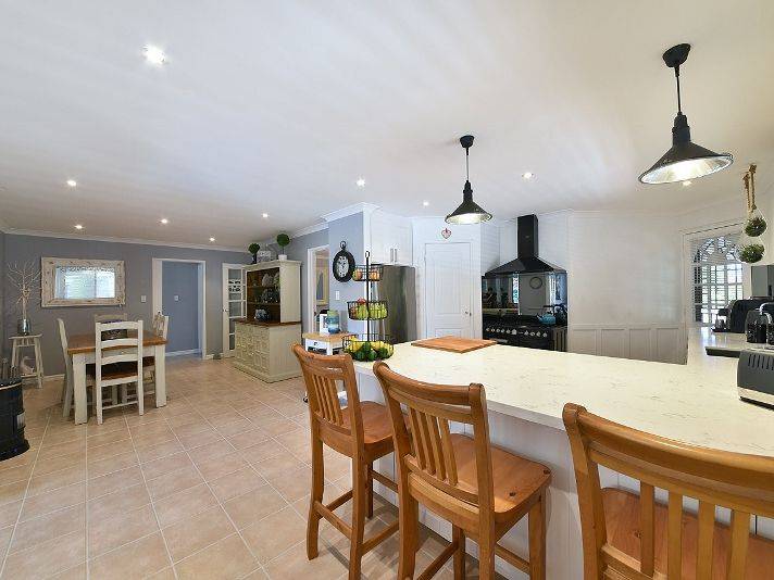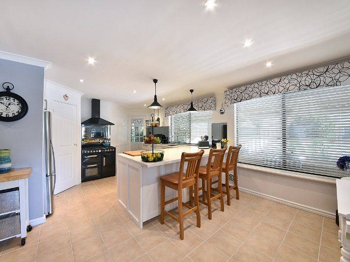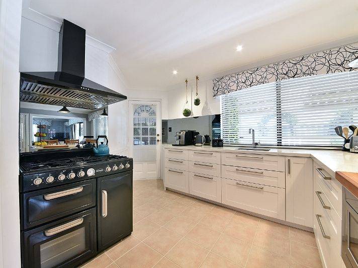 Magnificent kitchen with stone benchtops, free standing Euro 5 burner gas cooktop and oven, integrated dishwasher, quality finishings, mirrored splashbacks and all with tonnes of room to cook up a storm