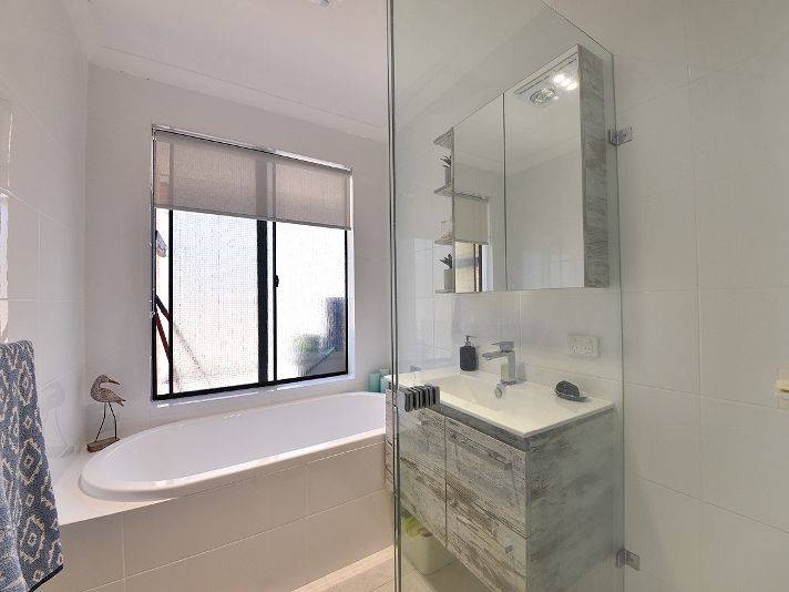 Fully renovated ensuite with shower (with glass screen), stylish vanity, full height tiling, heat lamp and finished with quality fixtures and fittings