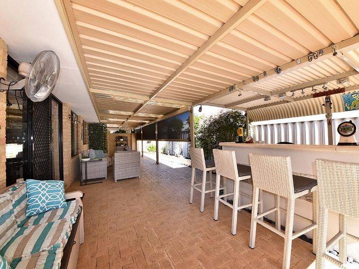 Awesome outdoor entertaining area with quality cafe blinds for all year round entertaining and inbuilt bar area