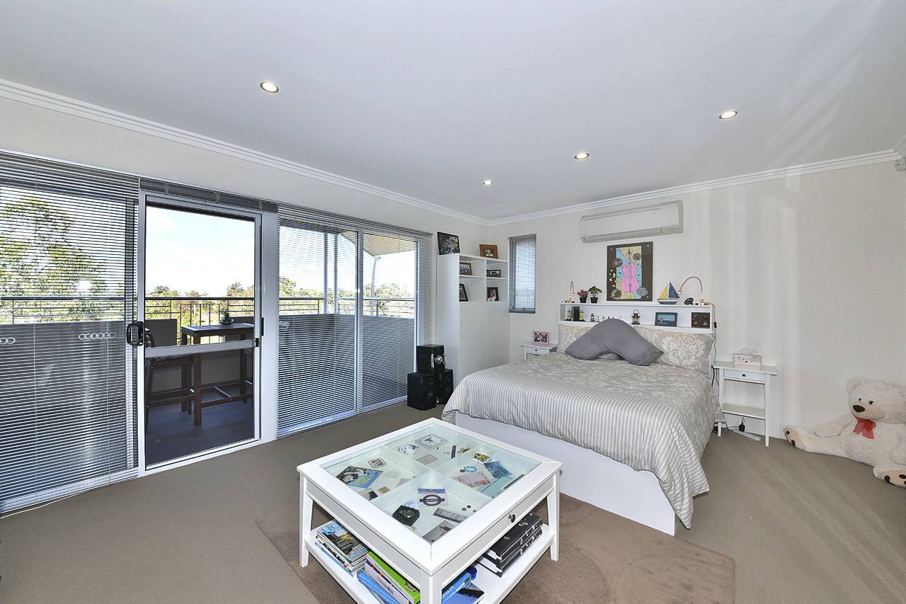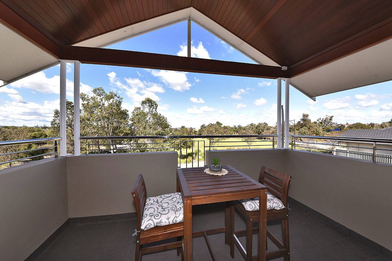 Upstairs reveals another stunning living area, a Media room or the perfect spot to curl up with a book. (This is now furnished as a bedroom). Your guests will love to join you for drinks on your balcony overlooking the park and with views to the Hills.