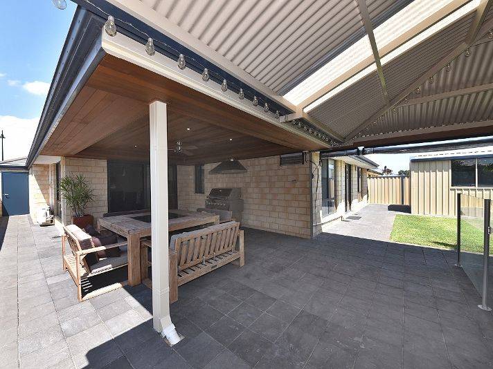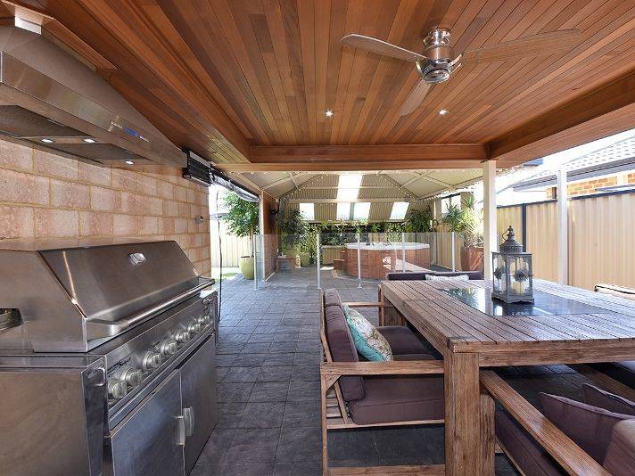 Sensational outdoor entertaining with feature cedar lined roof, lighting, ceiling fan and inbuilt rangehood BBQ area