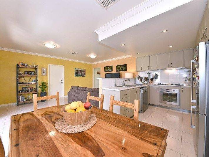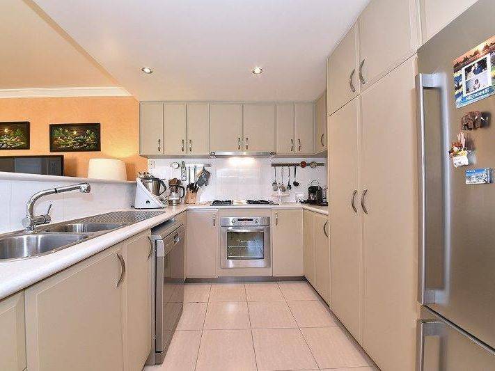 Tiled, open plan living with lots of natural light. As you can see from the photos, there’s room to waste in this villa. Massive dining area, chef’s kitchen with all the amenities and lots of bench space plus loads of storage cupboards.