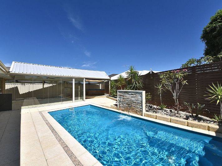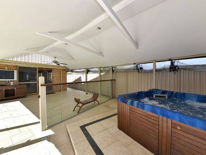 The perfect outdoor area for all year round entertaining with feature glass panels overlooking below ground pool and spa