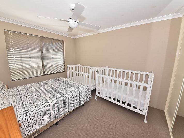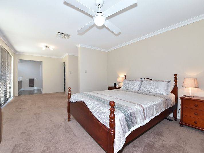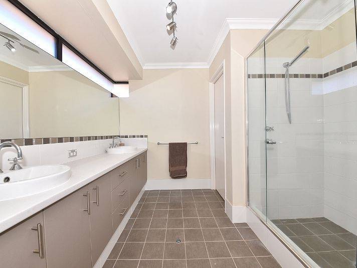 Bedrooms 2, 3 and 4 are all double sized with double mirrored sliding door robes (with inbuilt shelving) and ceiling fans