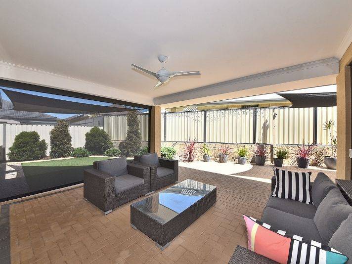 Step outside through 2 x double retractable sliding doors to an extra large alfresco entertaining overlooking an easy care, low maintenance backyard