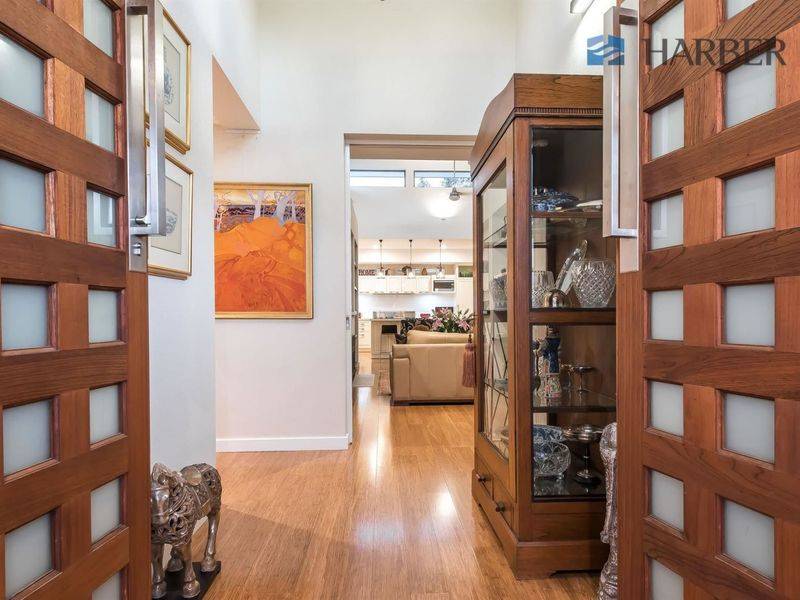The private double door entry opens to vast open plan living spaces and kitchen with magnificent high ceilings and impervious bamboo flooring all seamlessly flowing out to the cedar lined alfresco and pool.