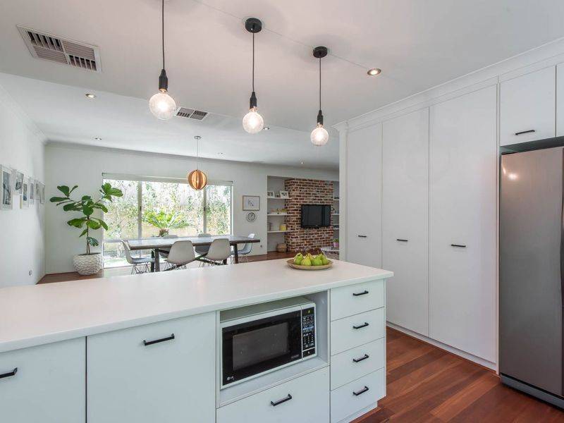• Kitchen features Corian benchtops, extensive pantry storage, ample cupboard space, island bench breakfast bar for meals, new dishwasher and glass splashbacks.