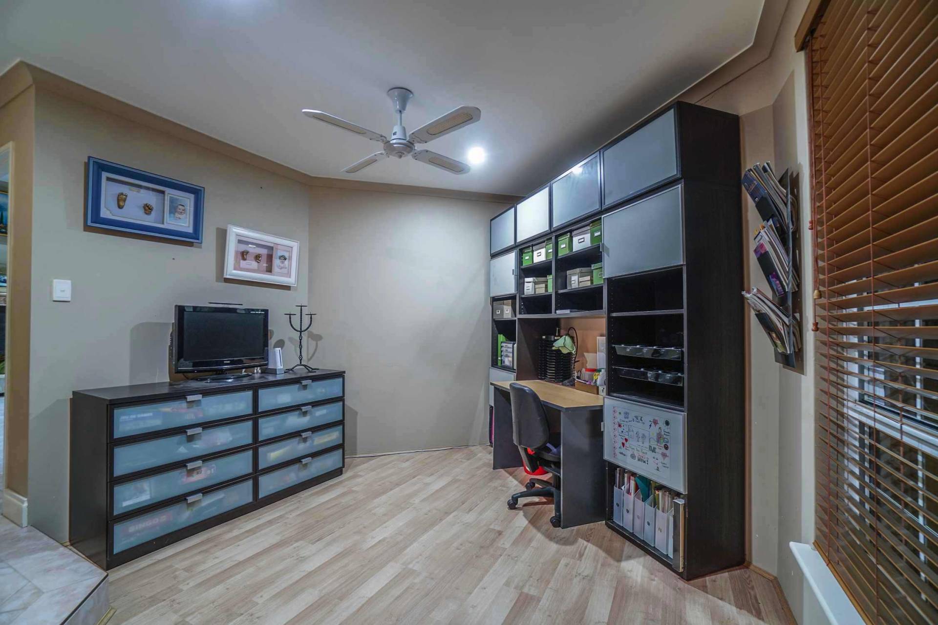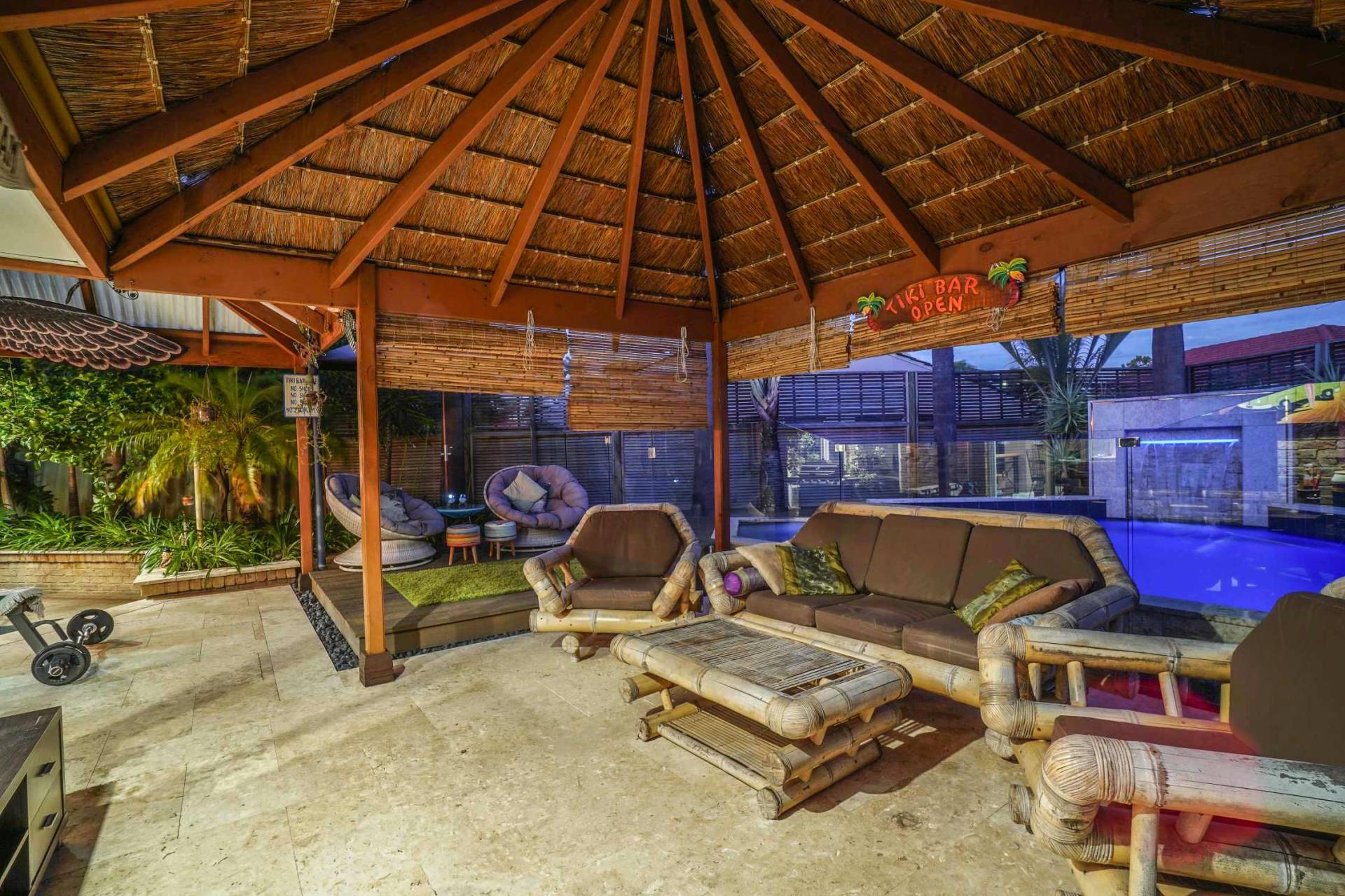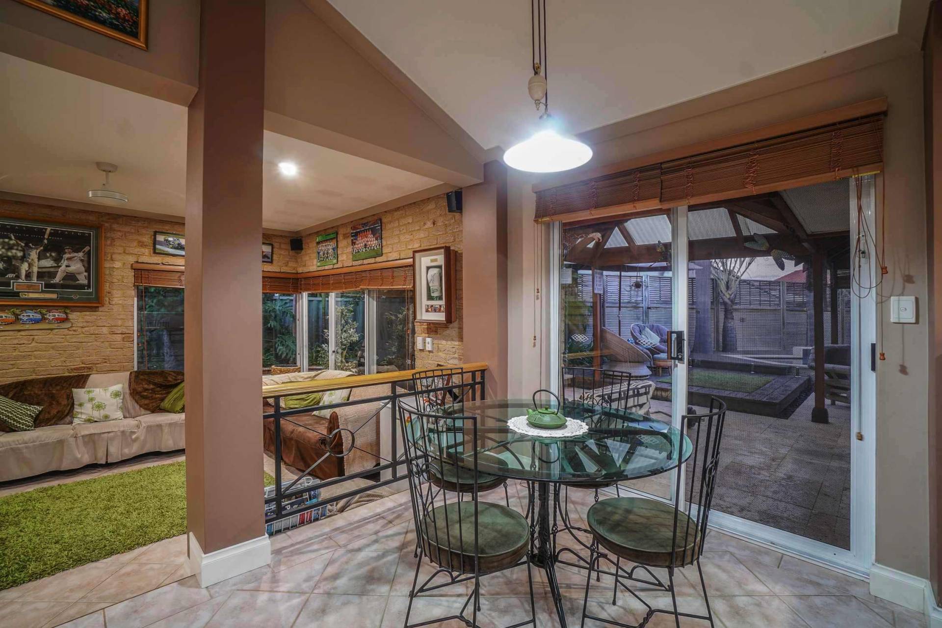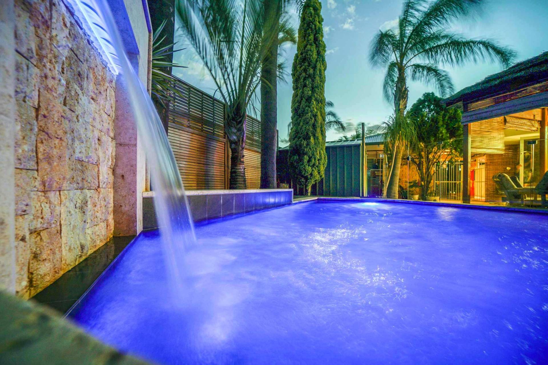 Step down from the entrance into the front living/dining area with floating timber floors, ceiling fan and vaulted raised ceiling. Further down the hallway you will enter the spacious and well laid out open plan family, meals and kitchen area making entertaining a breeze. The 3.2m high ceilings and large split system air conditioner will make this the entertaining hub for your family and friends. The large kitchen with a plethora of cupboard space, built in pantry, gas gook top, breakfast bar and shoppers entrance has always been the heart of this family home. This area opens out onto possibly Ballajura’s best outdoor area! The huge patio area has stunning coral stone paving which leads to your own Bali hut to make you feel like you have your own Balinese villa. And no luxury Balinese villa is complete without a stunning pool with spa zone and water fall feature. All of this in the privacy of your very own back yard. This 621sqm block also has manicured gardens with a raised veggie patch and a good sized garden shed. I know what you’re thinking…”running a pool can be expensive!” Well, not with the 25 solar panels on the roof outputting a massive 6kw of power.