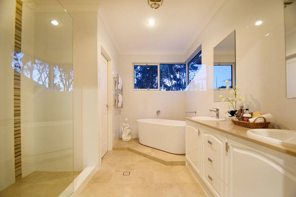 There’s 3 bedrooms, fully tiled and renovated bathroom and laundry on a downstairs wing of the home and upstairs a huge main bedroom with big walk in robe, a separate parents retreat and an amazing ensuite with freestanding bath, his and hers double vanities and hobless shower.  The main bedroom also features auto security shutters and opens to a wide tiled balcony with serene park views.