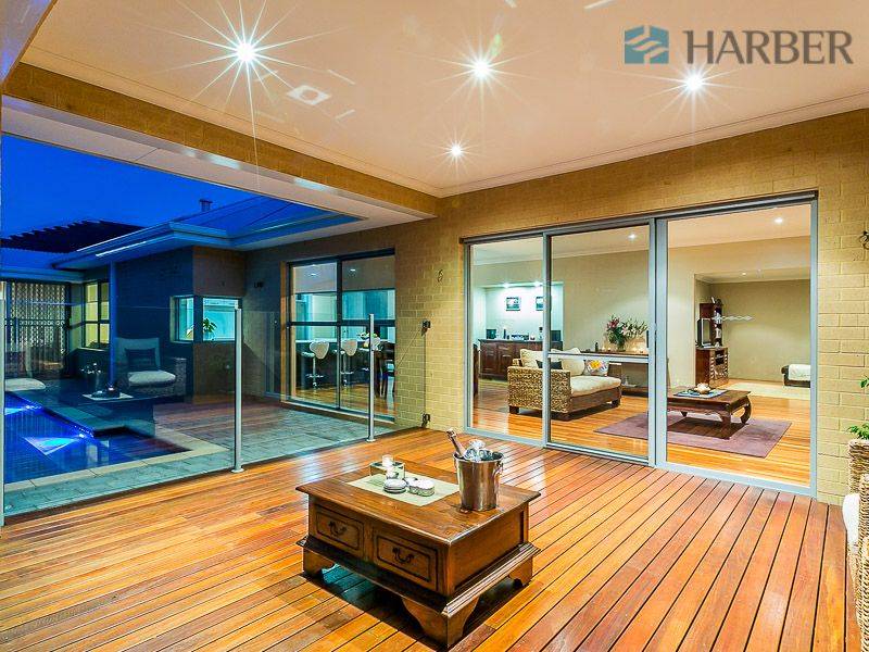 The undercover Alfresco area has been designed for year round entertaining with glass sliding doors and large windows wrapping around an alfresco garden with neat established and fully-reticulated garden and flower beds - unusually large for Burns Beach