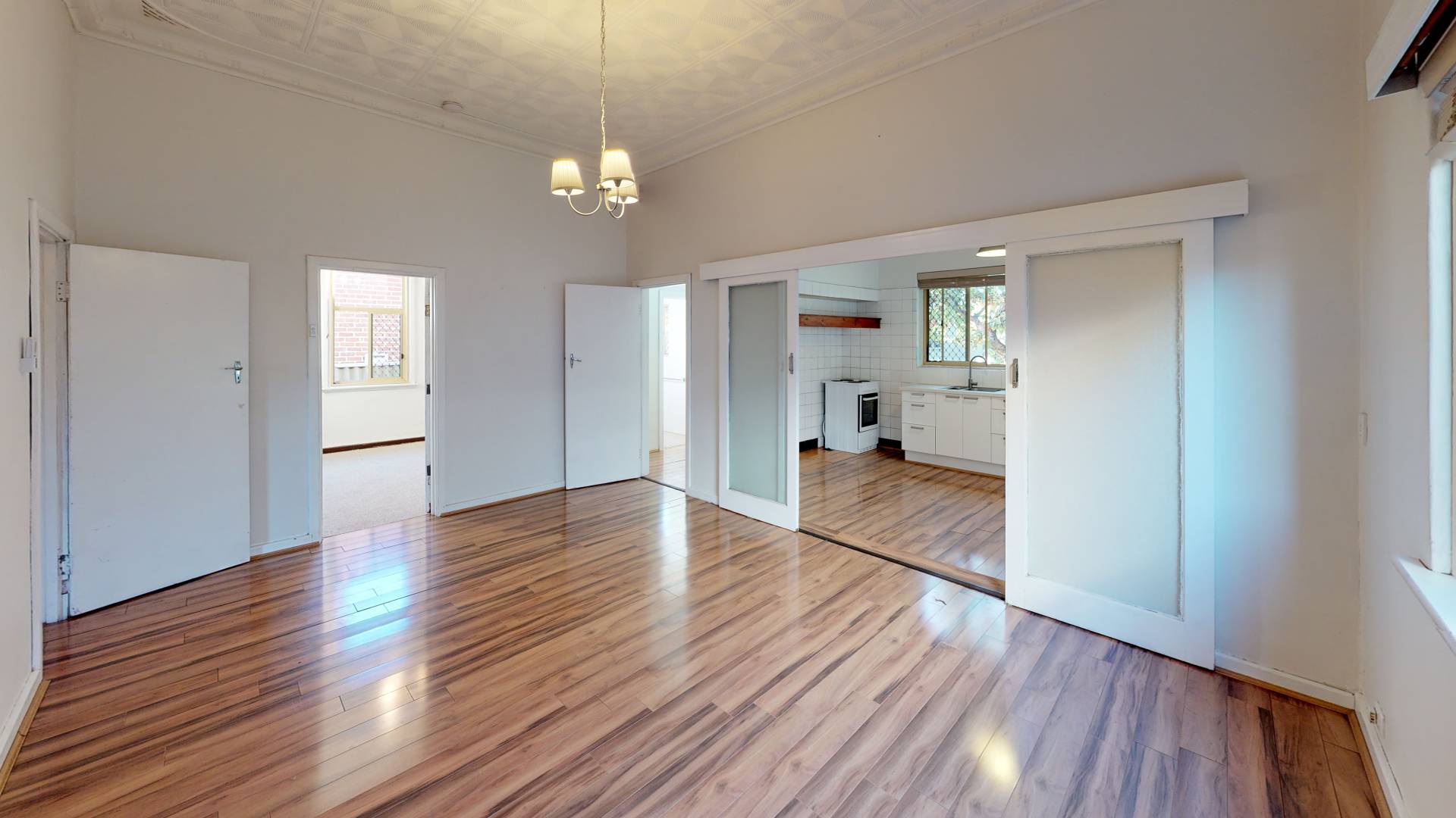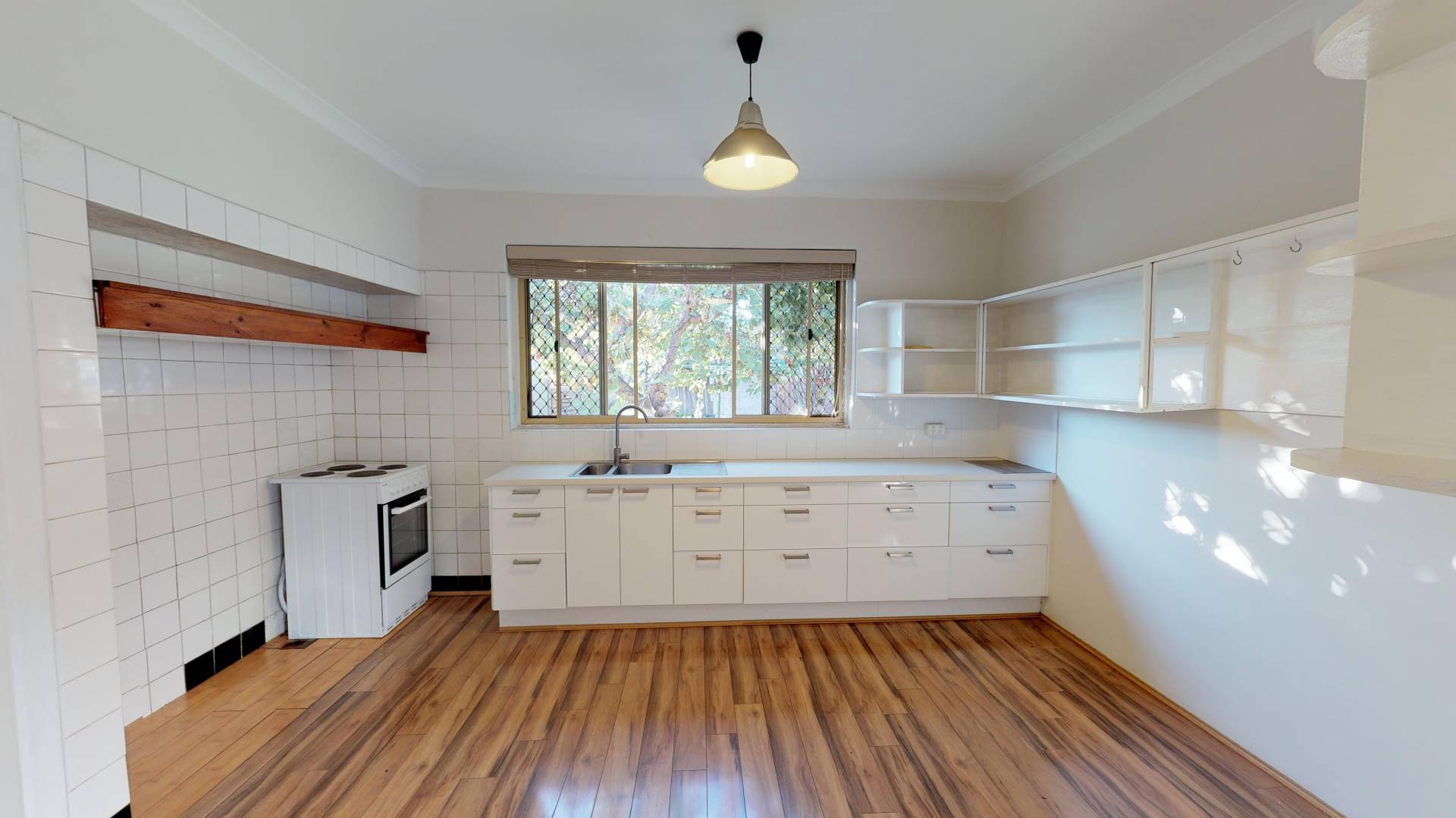 Timber-laminate flooring to the living areas.