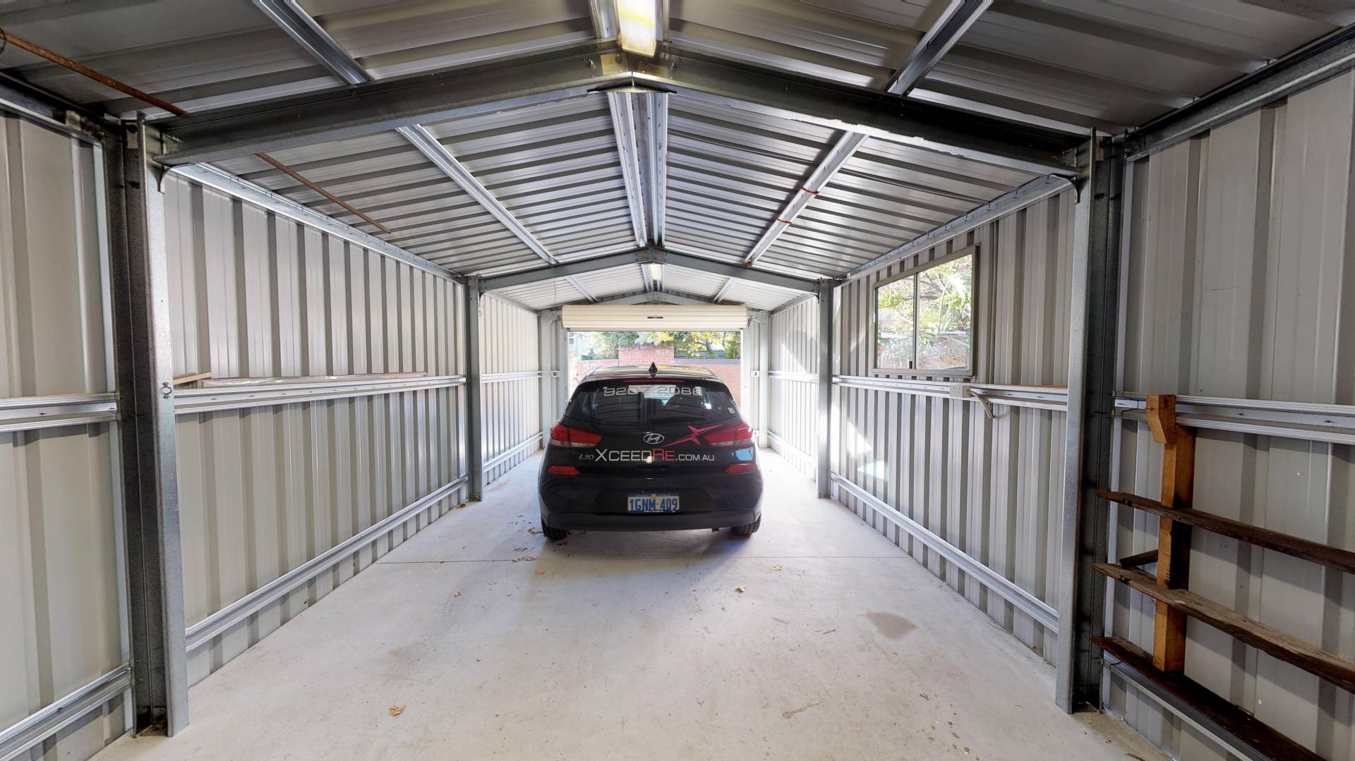 Extra-long double garage that will fit two cars.