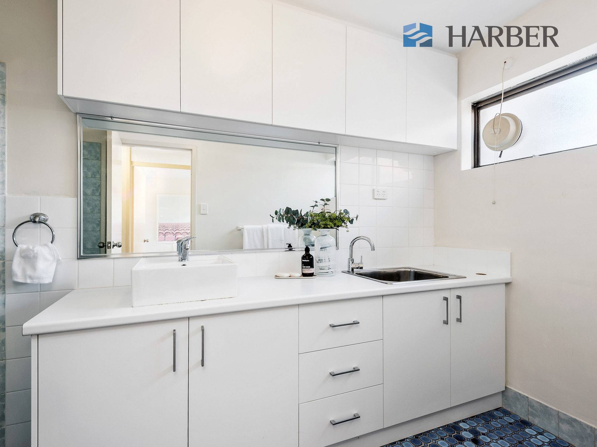 The bathroom/ laundry has been updated with gleaming white cupboards, big mirrors, loads of storage and new vanity basin.