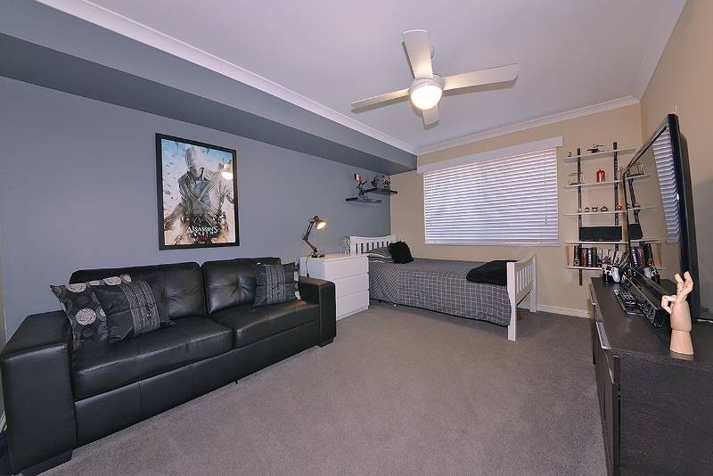 Extra spacious master bedroom with parent retreat, stylish ceiling fan and WIR with door