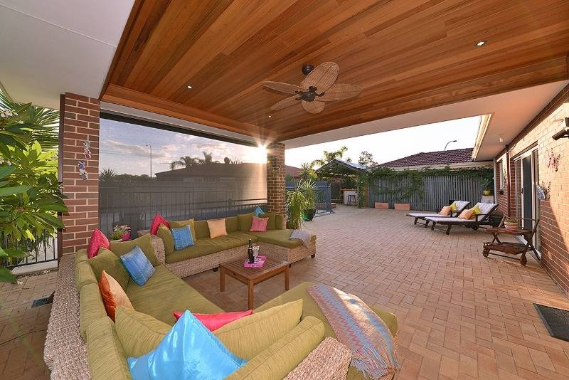 Magnificent resort styled outdoor entertaining with cedar lined roof alfresco, ceiling fan and feature lighting, all overlooking a fully fenced, below ground pool with poured limestone paving