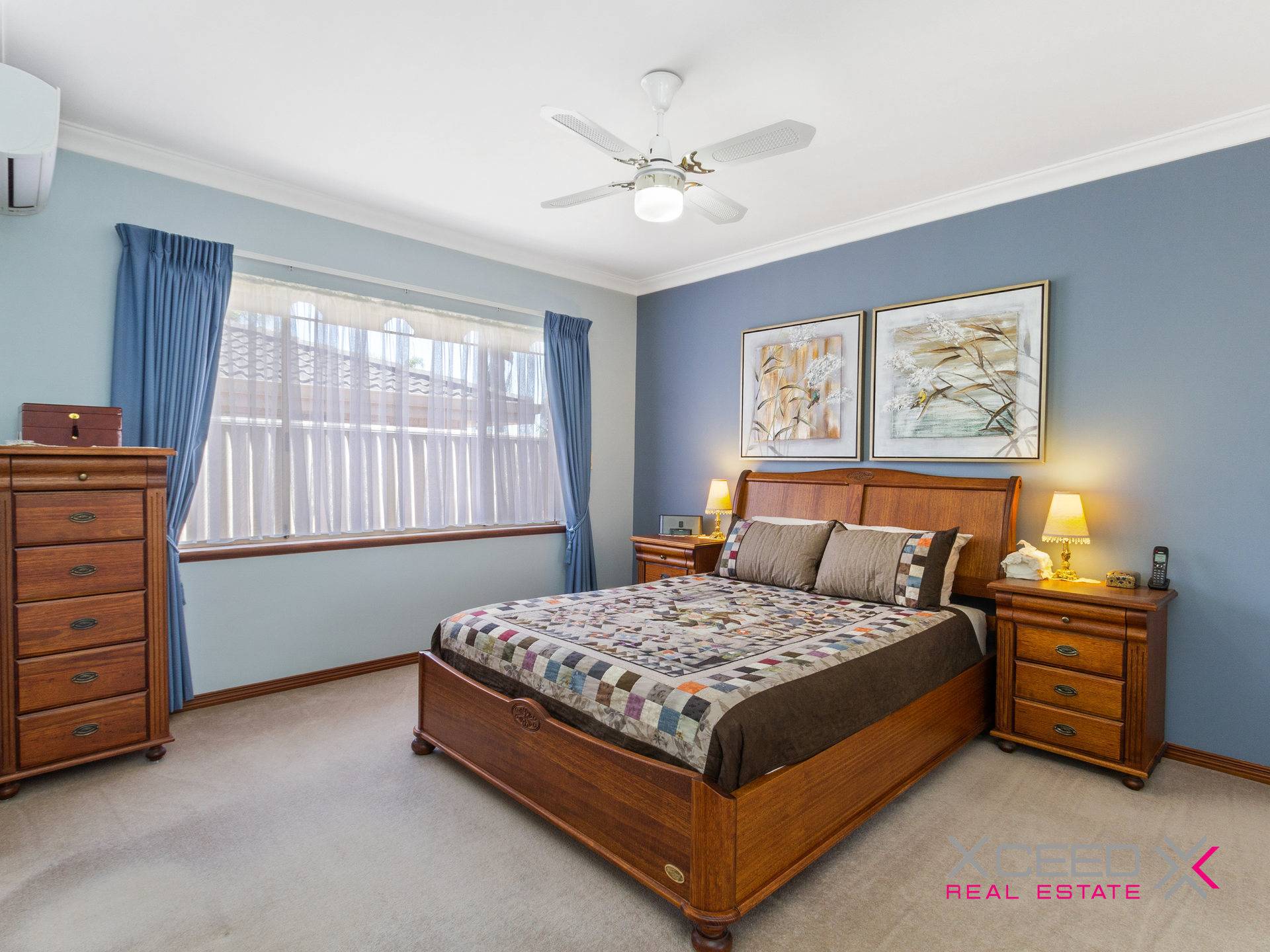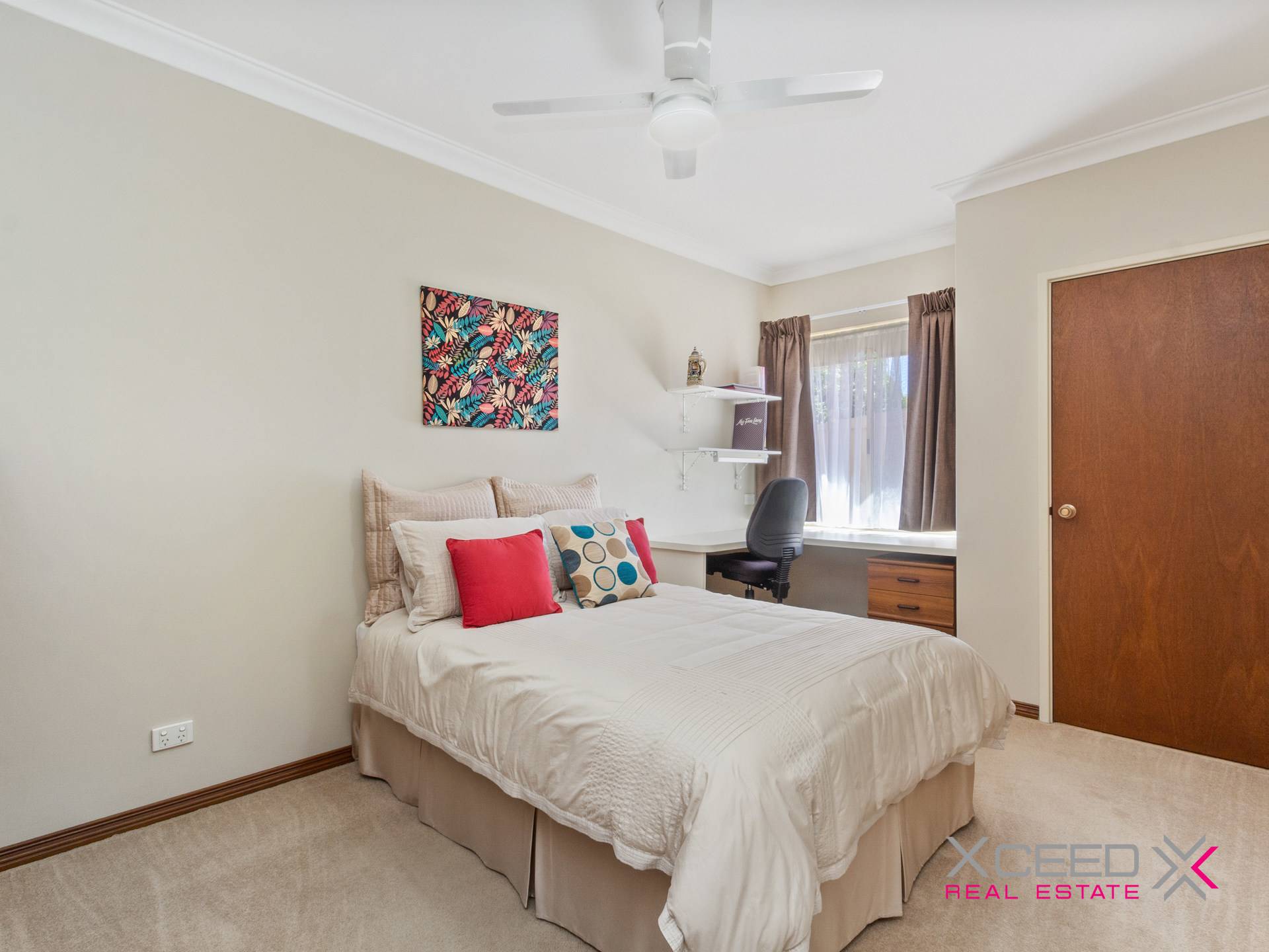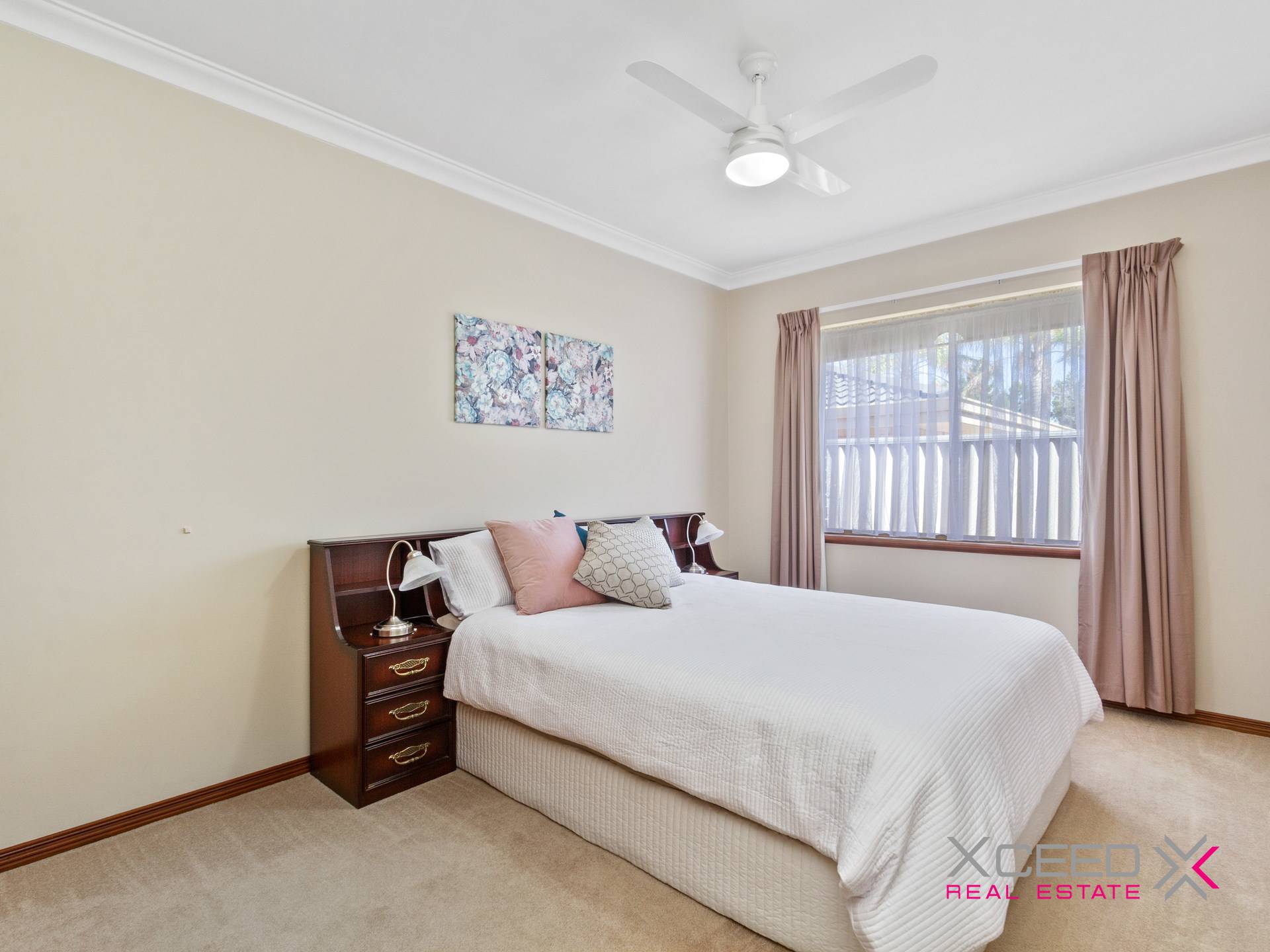 • Queen-sized 2nd bedroom with carpet, built-in robes and a ceiling fan