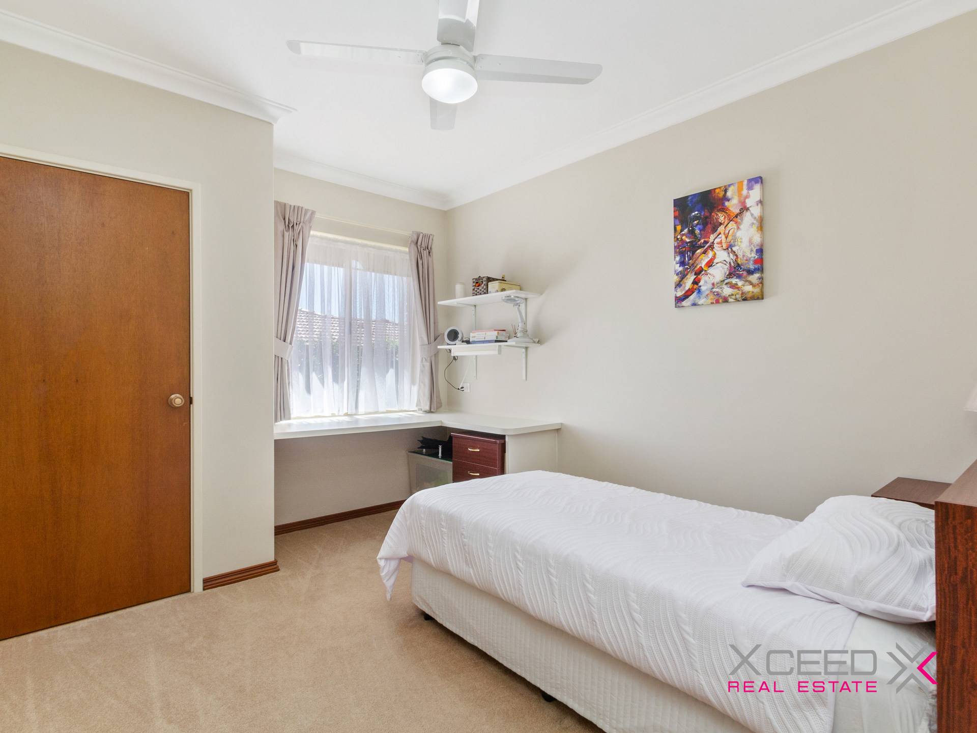 • Huge carpeted 3rd bedroom with a fan, BIR’s and a built-in computer desk