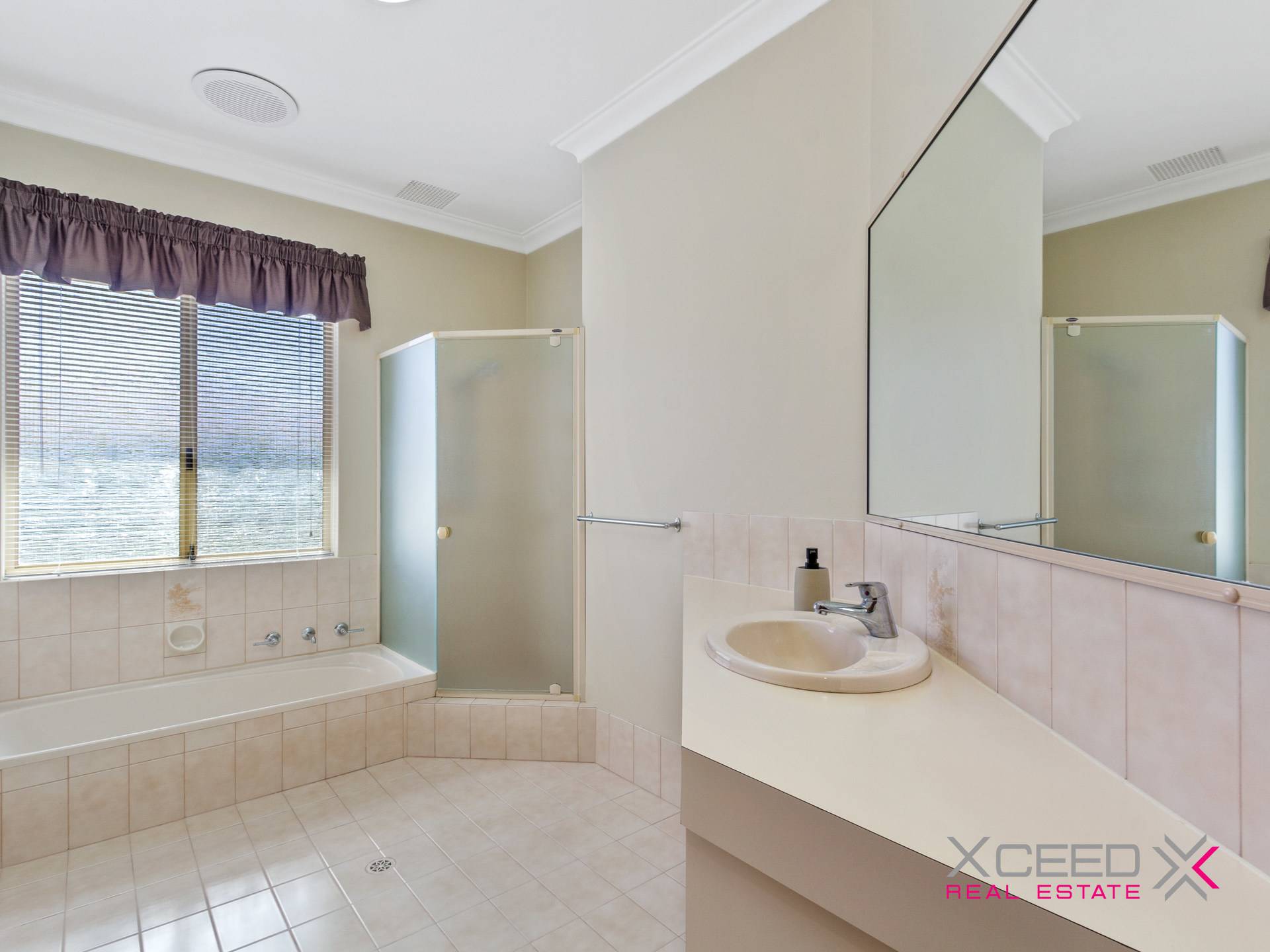 • Spacious main bathroom with a separate shower and bathtub