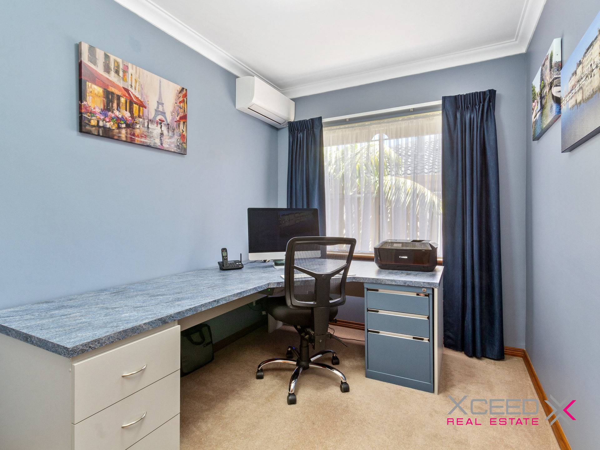 • Carpeted front study with split-system air-conditioning