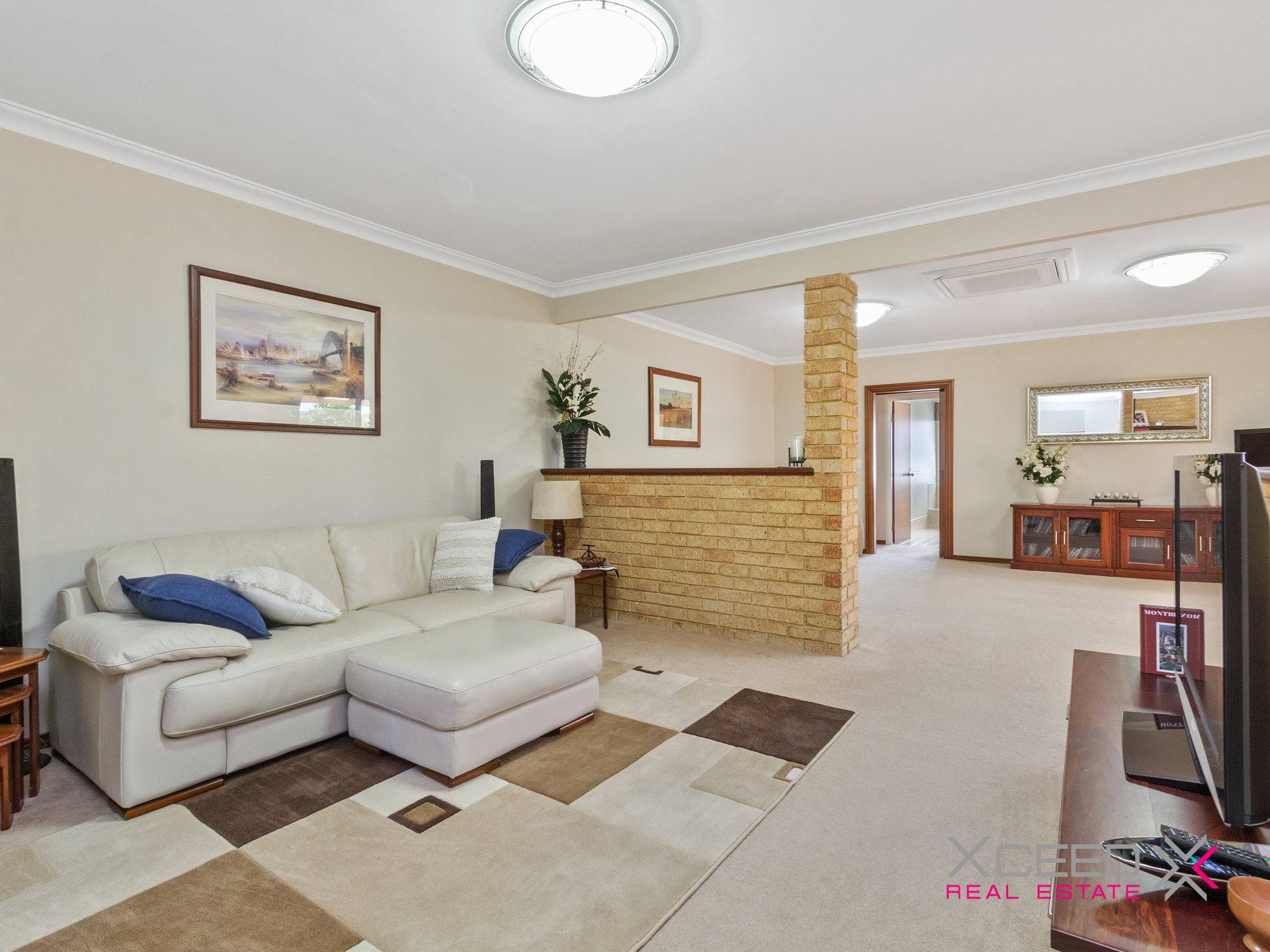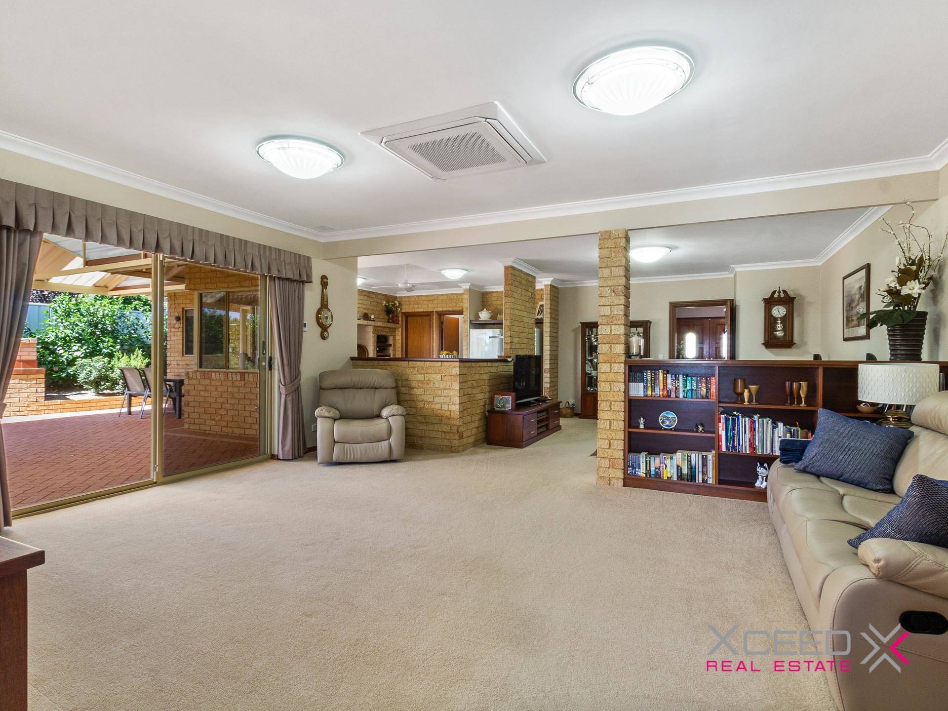• Huge carpeted family and games rooms with reverse-cycle cassette air-conditioning, a gas bayonet for heating, a bookcase and seamless outdoor access to the patio