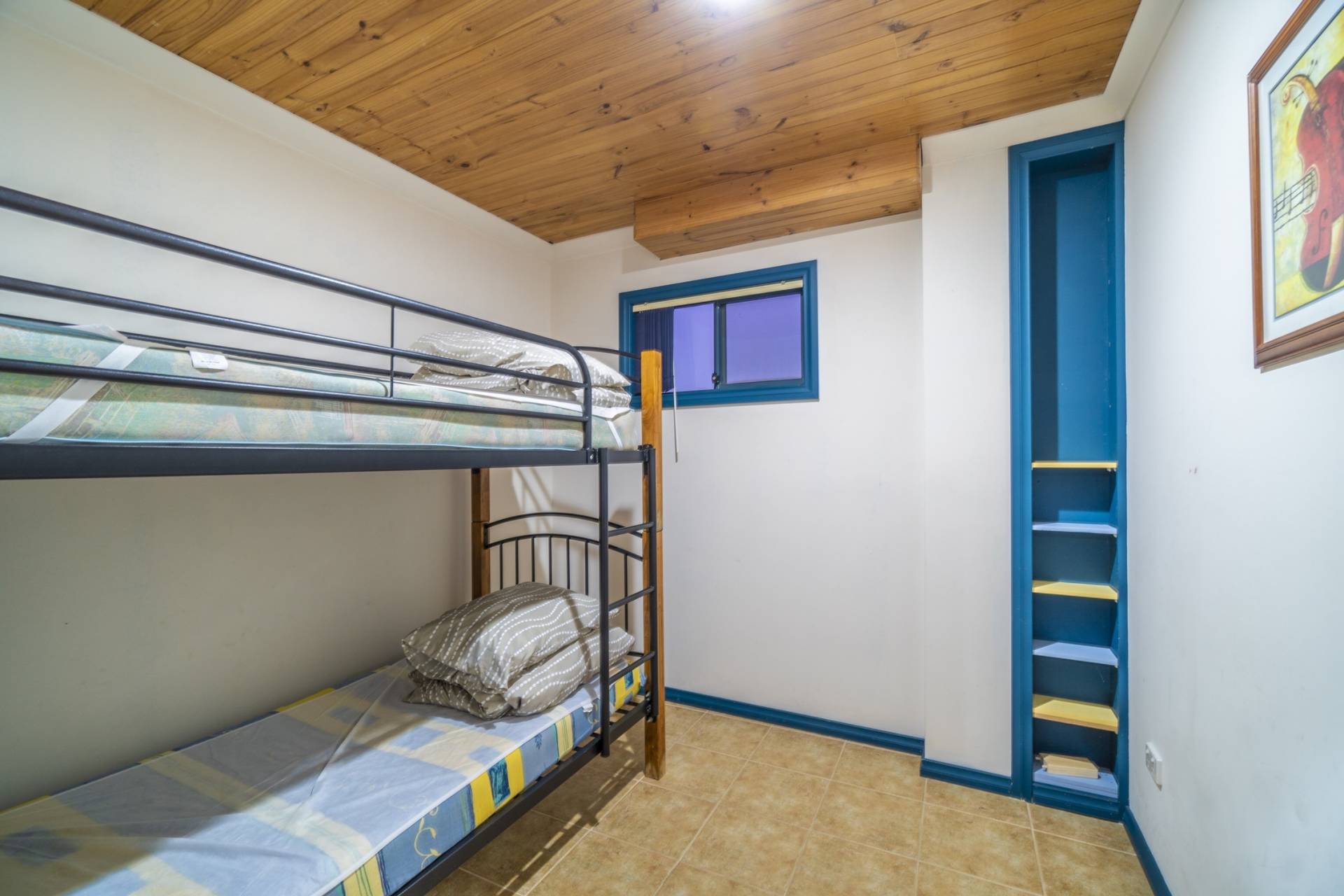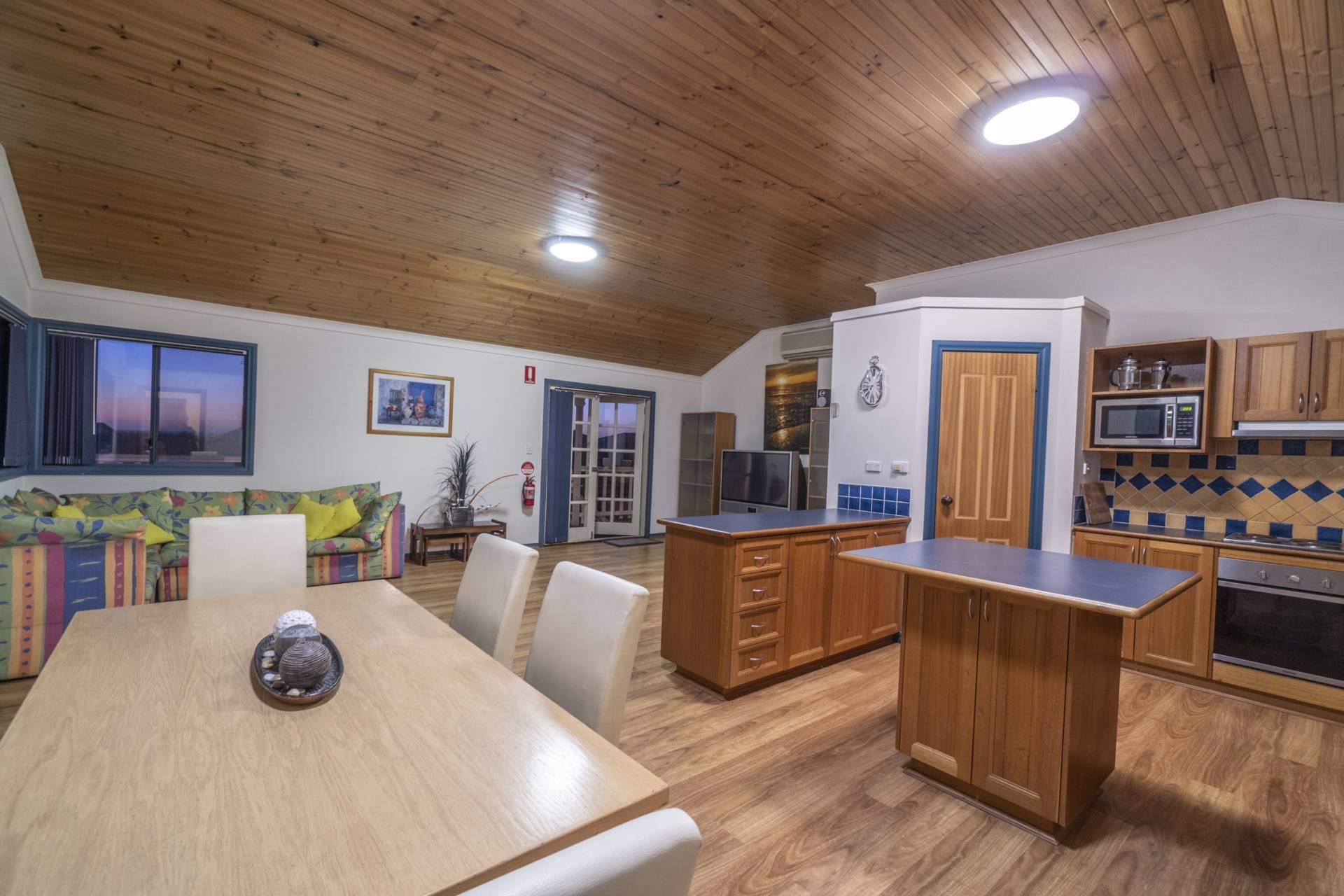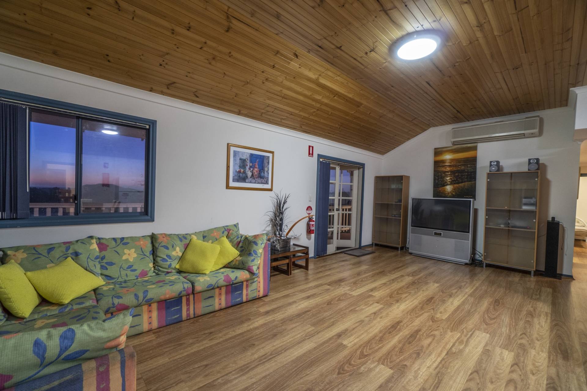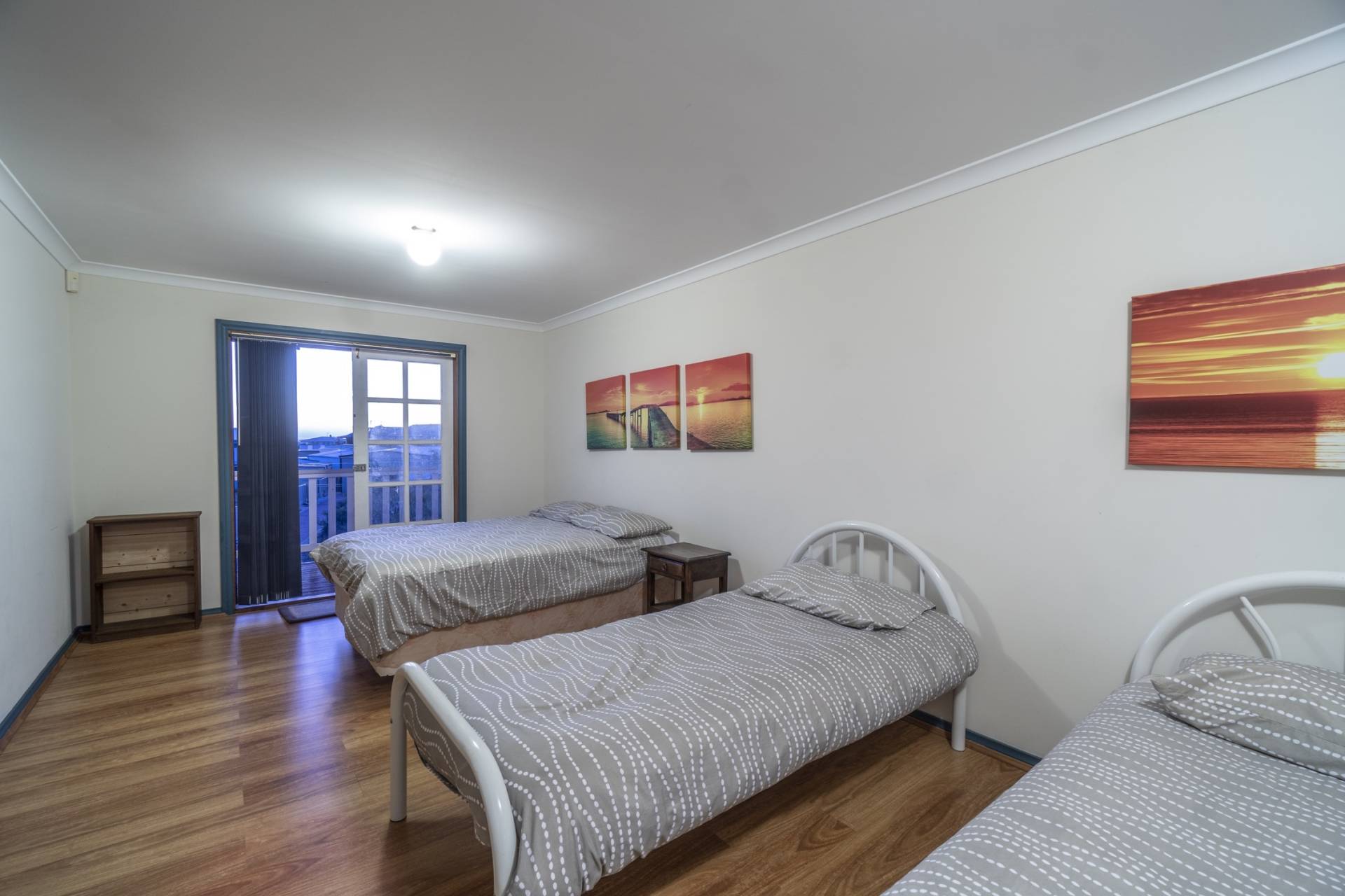THE FIRST FLOOR has a very large Master Suite with timber flooring, walk in robe, full en suite and private access to the balcony. The second bedroom is a queen-sized room with French door leading to the balcony, the third bedroom is an enormous dormitory sized room with balcony access ideal for all the kids. The living area and large country kitchen feature a timber lined ceiling and form the main space of the first floor with each bedroom and bathroom leading off the area. Truly, the main attraction of this gorgeous home is the giant balcony deck, with an external staircase and enough room for the whole family to comfortably sit out on it and enjoy dinner and the sunset, the view is an absolute must see.