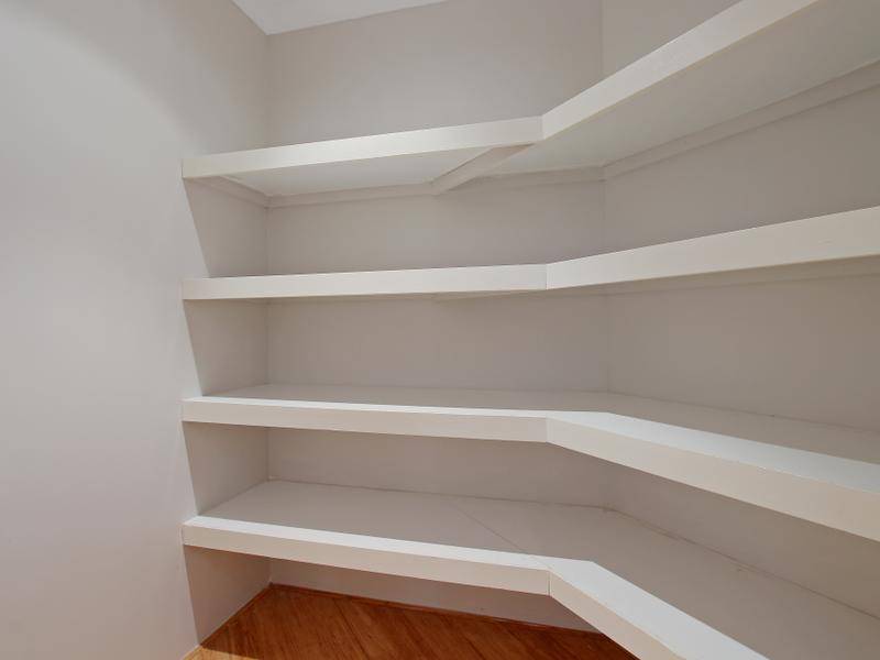 The open plan kitchen has a shoppers entrance from the garage and features stone bench tops, double fridge recess with plumbing, double dish drawer and a huge walk in pantry with the bamboo flooring that continues into the living/dining area. The separate theatre room includes B & W ceiling speakers and feature down lighting.