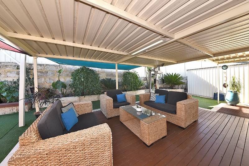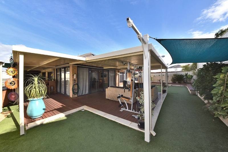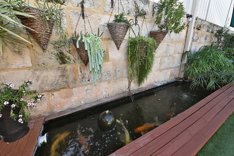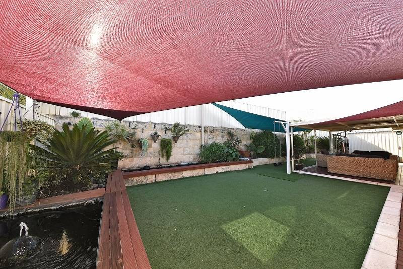 Awesome outdoor patio area with feature timber decking and made to size shade sails, all overlooking low maintenance backyard with easy care artificial lawn, manicured gardens and feature inbuilt fish pond (NB fish not included)