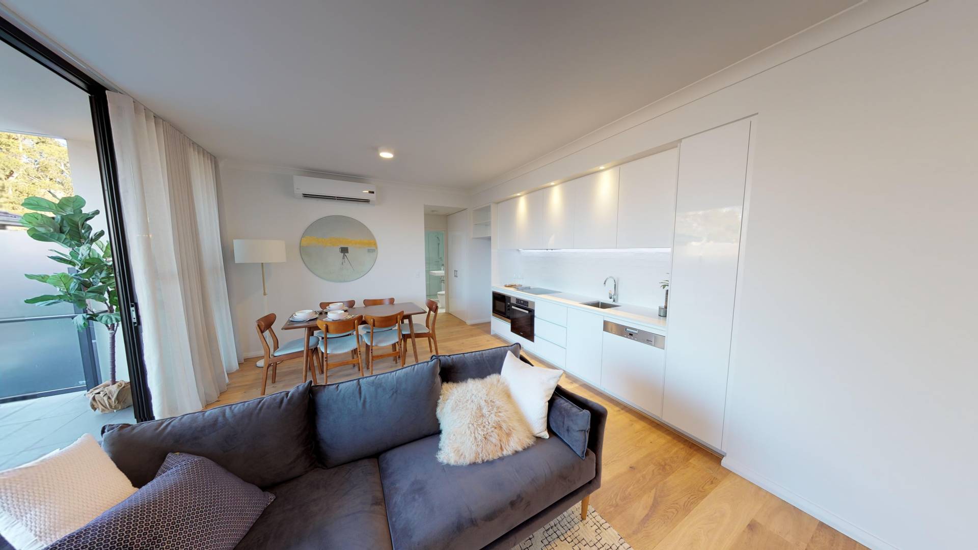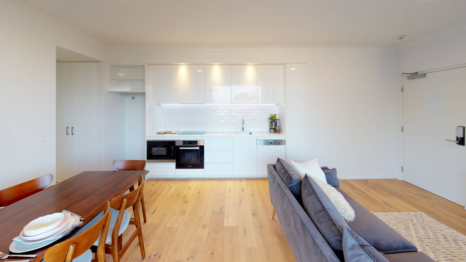 - Open plan kitchen living area with split system aircon - Spacious balcony that opens out from the living area - Well-appointed kitchen with stone benchtop & quality appliances including a built in microwave & dishwasher - The bedroom has a split aircon & mirrored robe doors - Digital door entry