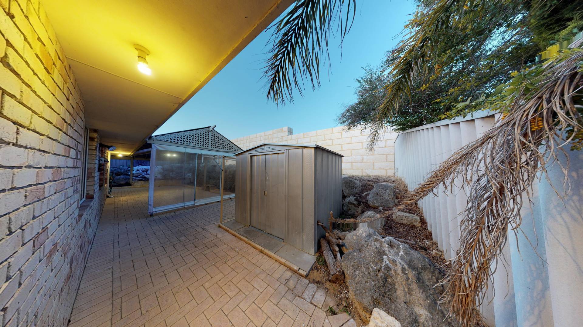 - There is also a garden shed at the rear of the property and the Alfresco also features Cafe Blinds