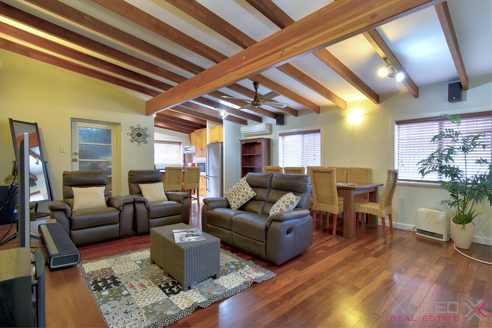 - Open plan family and meals area with gorgeous exposed beams to the ceiling & split sytem air con