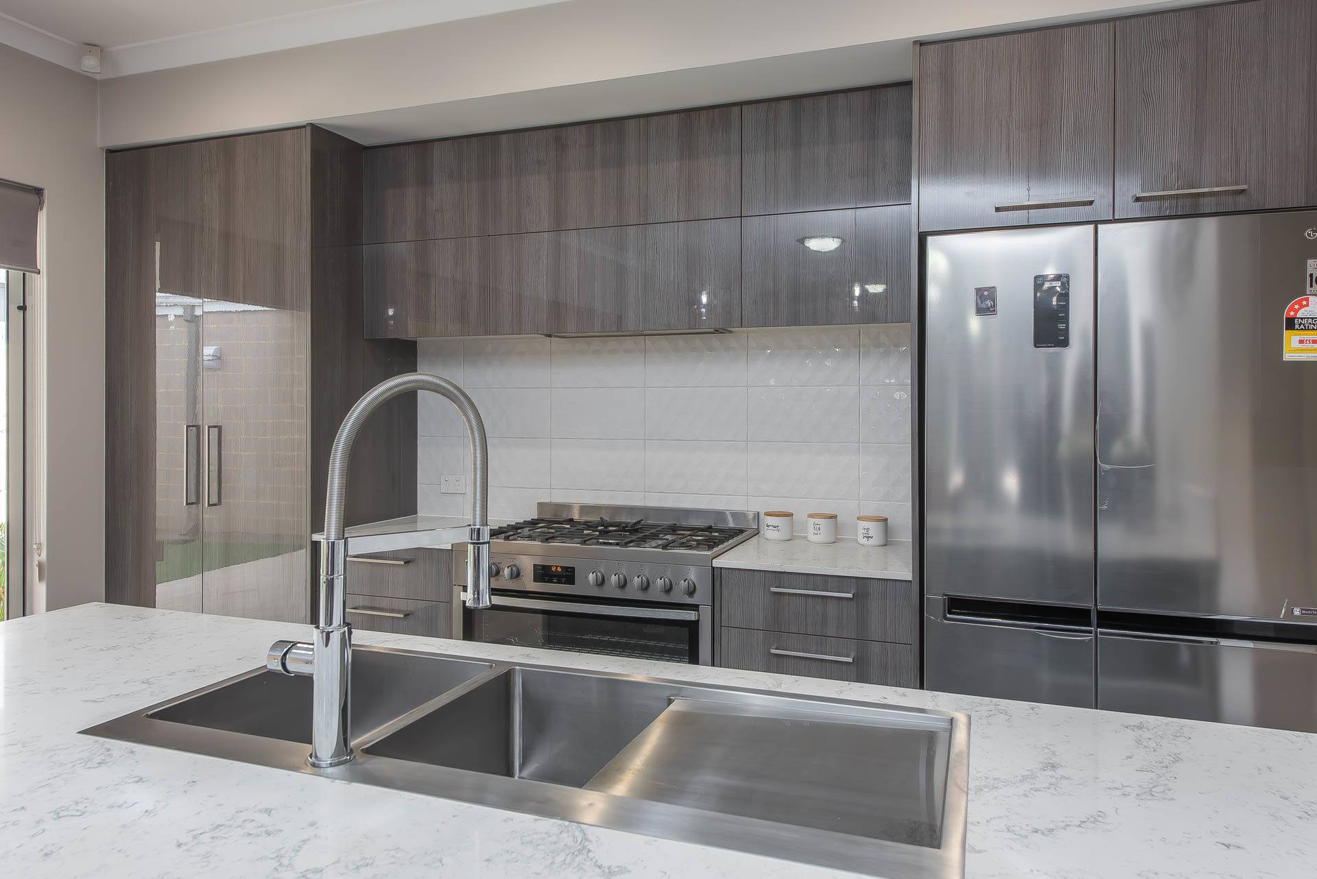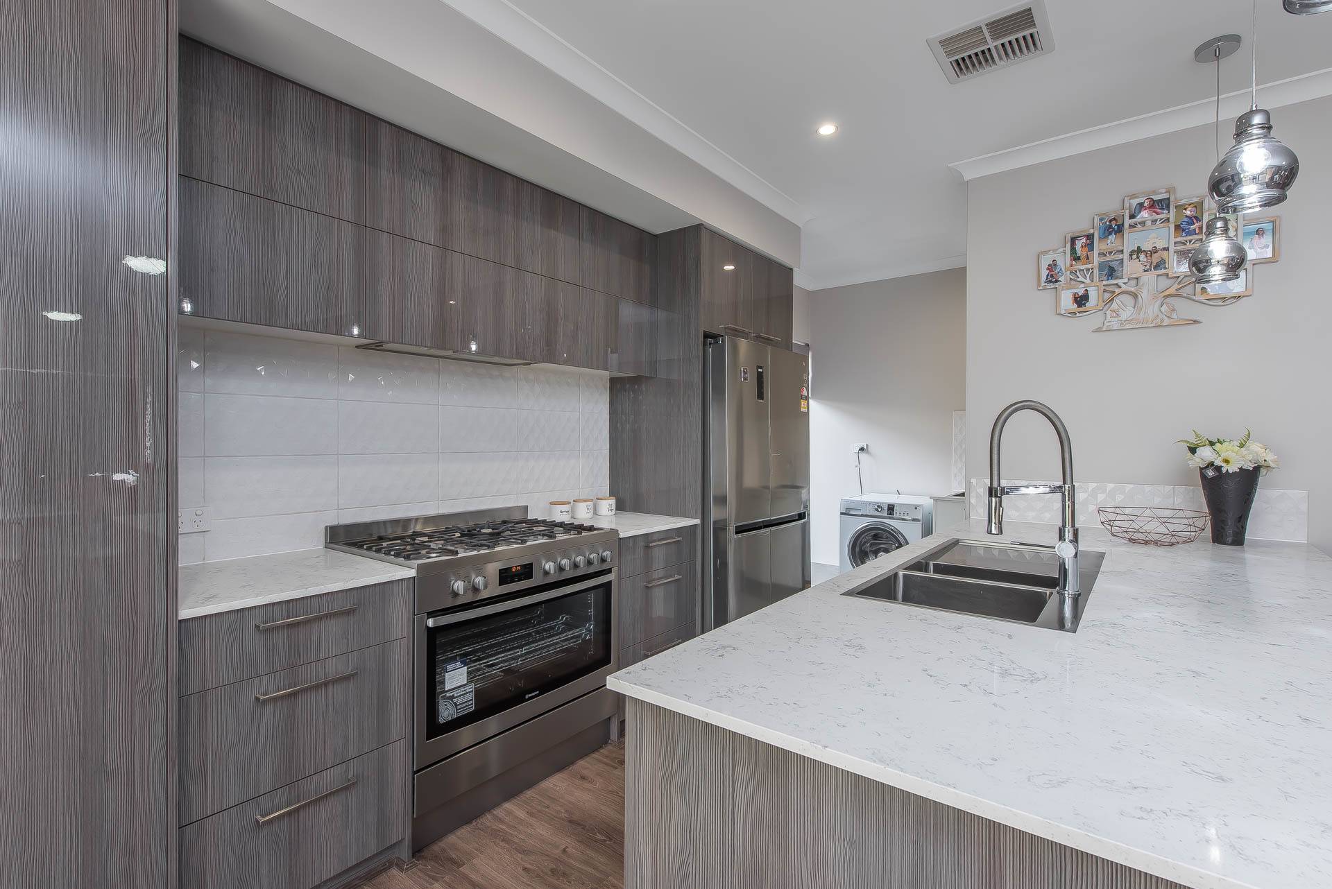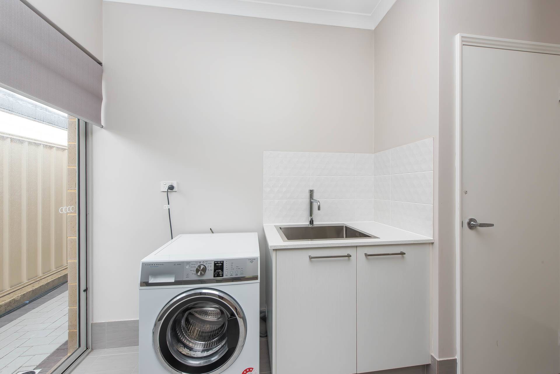 Upgraded laundry with premium tapware and stone benchtops.