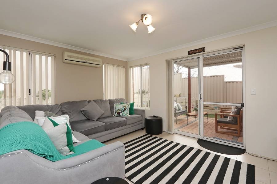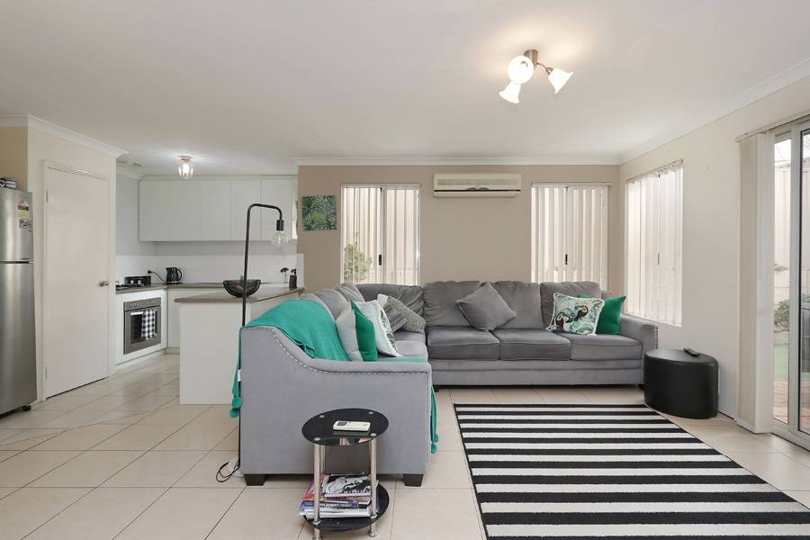 This modern property features 3 bedrooms, 2 bathrooms and a large open plan living area and kitchen. There is a split system reverse cycle air con which is enough to heat up or cool down the entire house. The kitchen features a dishwasher, gas cooking and rangehood with plenty of cupboard space. The master bedroom has a walk in robe and ensuite, all other bedrooms also have robes. Double lock up garage and door access into rear courtyard. A very low maintenance rear paved courtyard with alfresco area and easily maintained gardens with artificial turf. A very secure property that is close to all amenities including public transport.