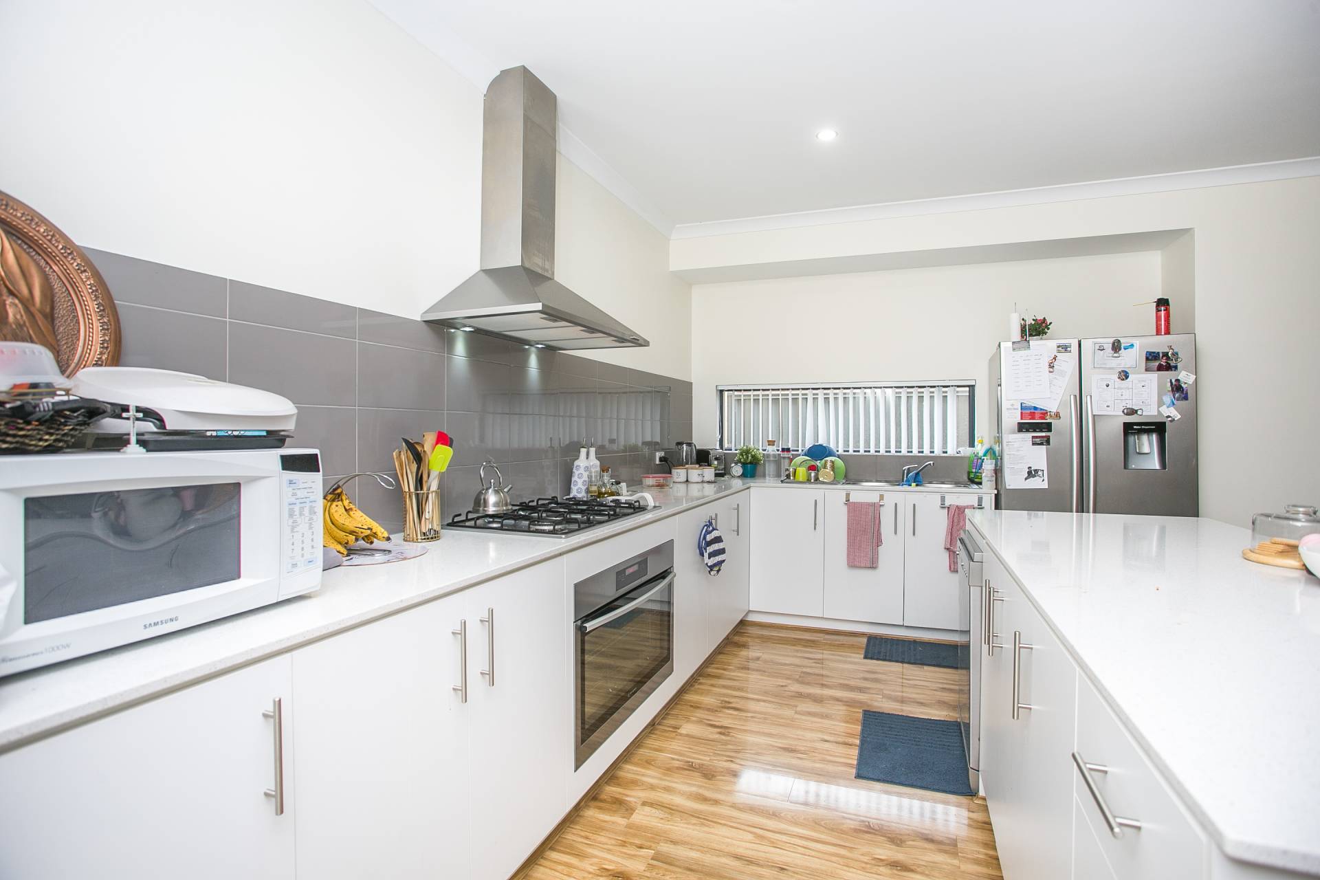The kitchen offers plenty of bench space and storage, along with modern stainless steel appliances including 5 burner gas cooktop, 900mm electric oven, rangehood and dishwasher.