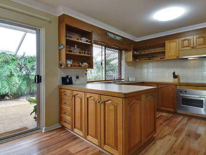 -The attractively modernised kitchen has ample Tasmanian Oak cabinetry, including