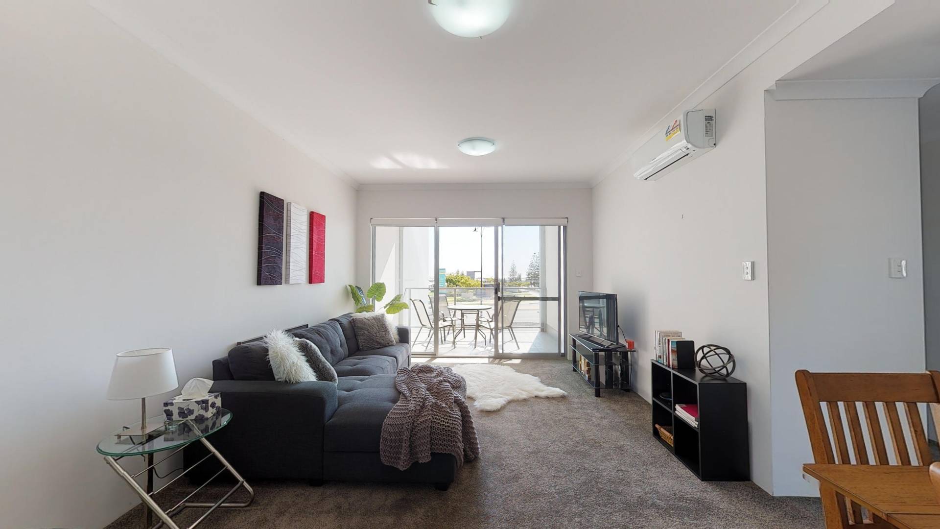 - The living area has a split system air conditioner which cools or heats the property easily and the sliding door opens onto the balcony