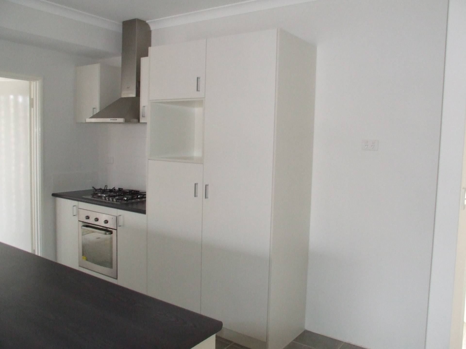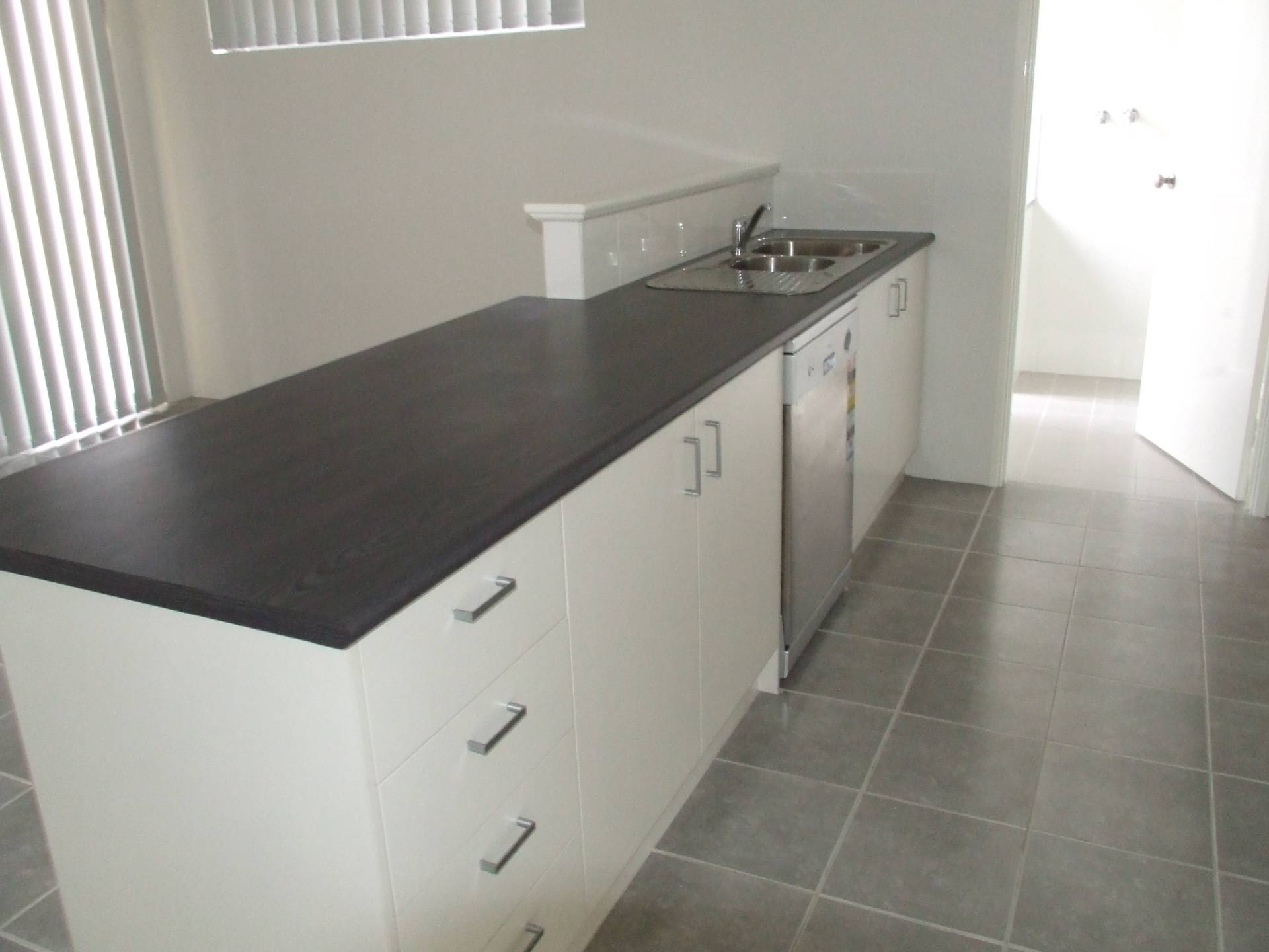 - Galley style kitchen is modern with lots of cupboards and dishwasher