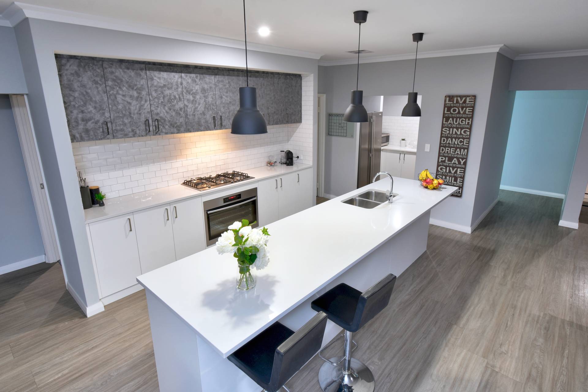 As you step into the bright open plan living zone you will be WOWED by the stunning DREAM kitchen, featuring stone bench tops, stainless steel appliances and stylish pendant lighting. Don’t forget to turn around as there’s also a separate scullery with a pantry to die for, additional bench space and double fridge/freezer recess. Adjacent is the laundry, featuring a clever addition in the built-in drying rack.