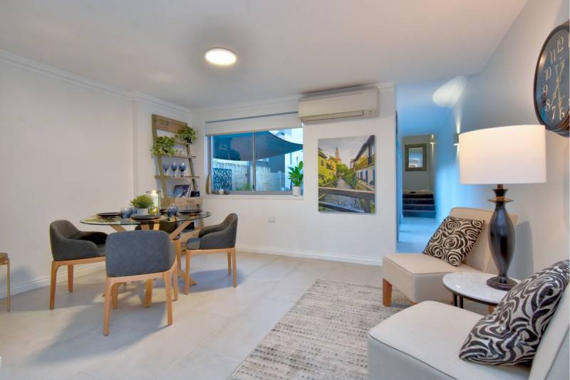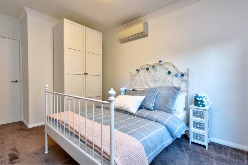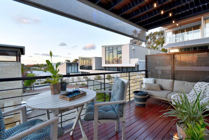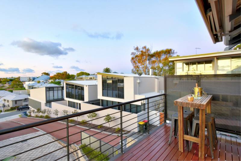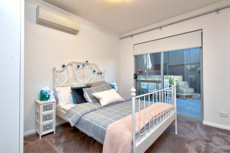 The third bedroom has a double walk-in robe and overlooks the central courtyard downstairs. To the rear of this level you’ll find the gorgeous master suite which has two double built-in robes, and ensuite with a bath, and adjacent powder room. All areas on this level have split system A/C units, although the Fremantle Doctor will take care of most of the cooling for you. Solar panels are another added feature to this home.