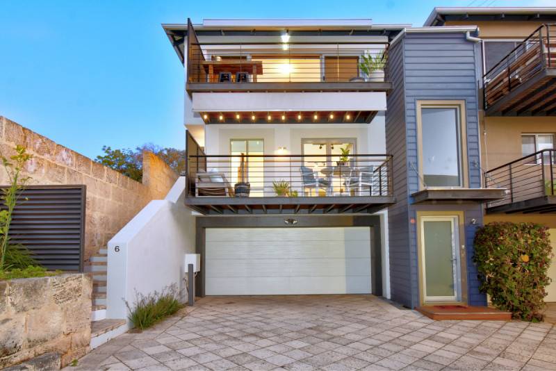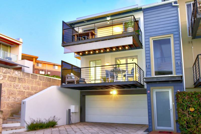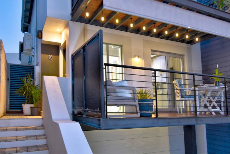 With 2 levels of living and an oversized double under croft garage, number 6 is positioned at the top of the driveway and has a striking elevation, maximising views of the Indian Ocean and stunning evening sunsets. Each level features its own timber-decked balcony, the second level featuring a retractable awning which can be adjusted as the sun moves across the sky, and the lower balcony has café sunscreen blinds for that extra bit of privacy.