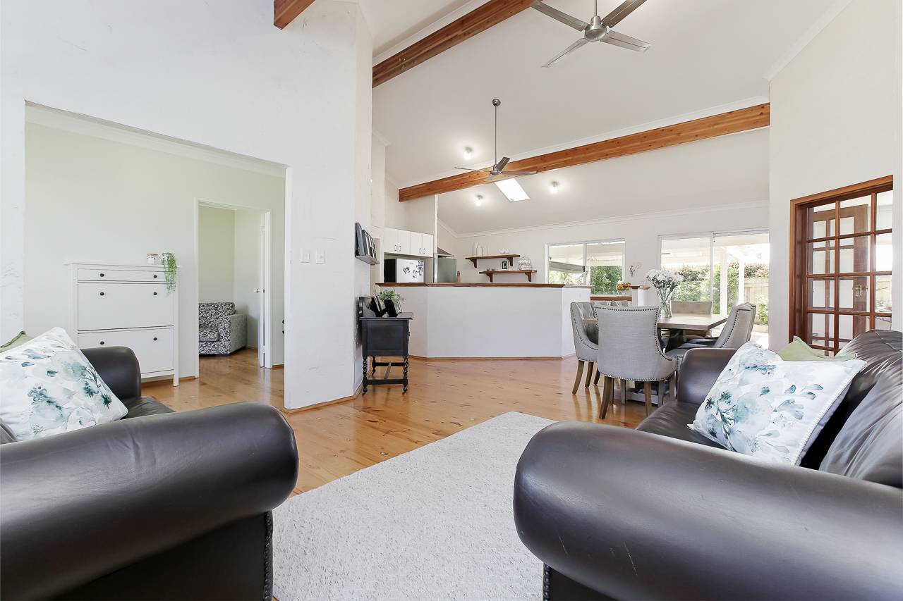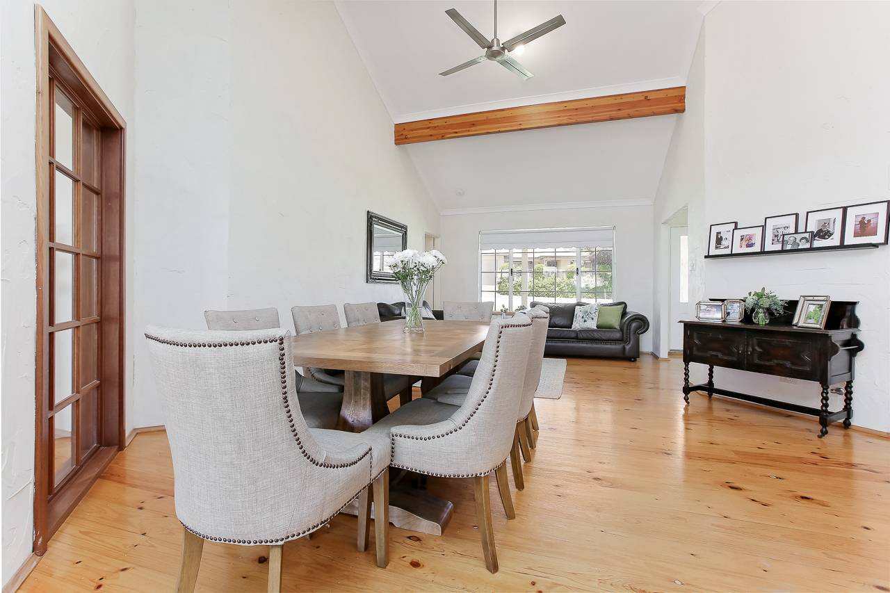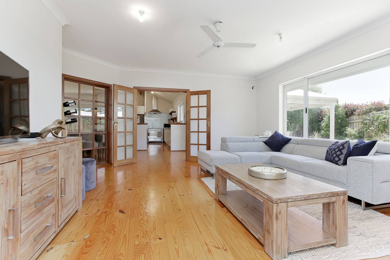 The white double door entrance gives an overall 'wow' feeling as your walk into this home. A spacious study or 5th bedrooms to the front on your left, and a large open plan living space as your turn the corner to the right. The main living room features wooden floors, high ceilings, air conditioning and a beautiful, large kitchen with double glass doors leading into the undercover patio seating area.