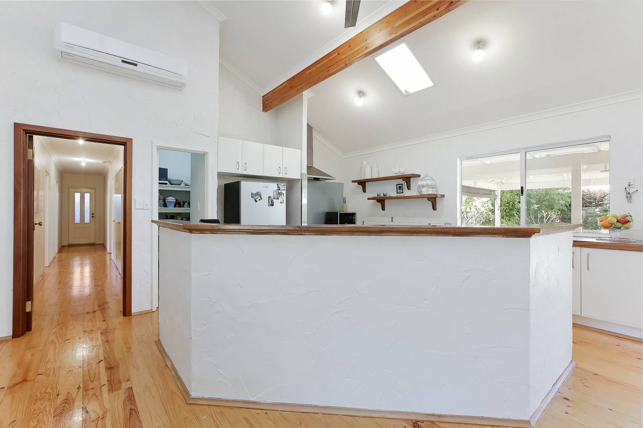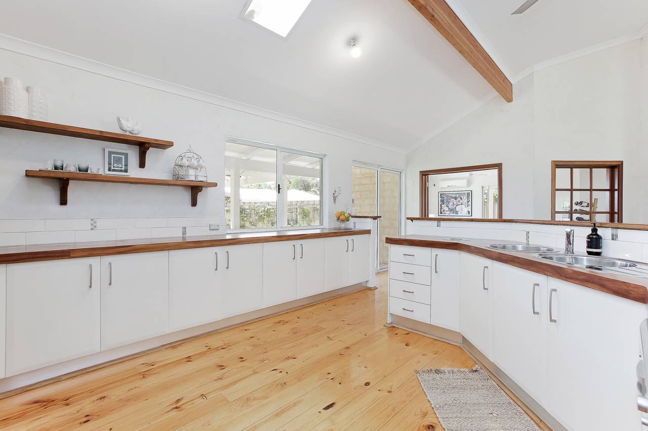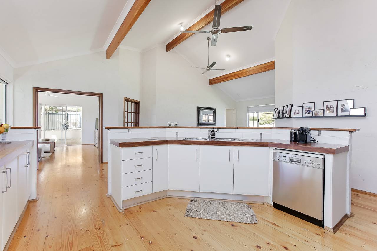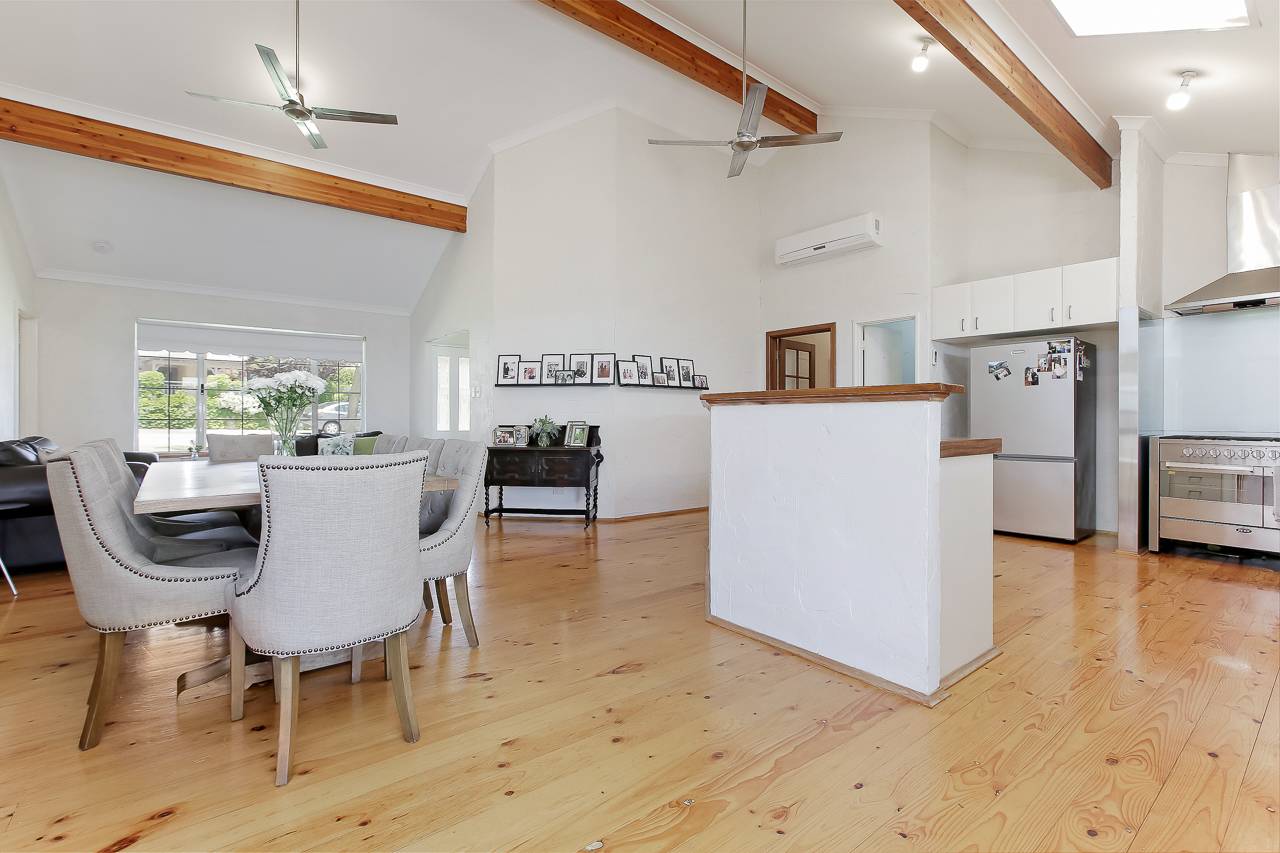 The white double door entrance gives an overall 'wow' feeling as your walk into this home. A spacious study or 5th bedrooms to the front on your left, and a large open plan living space as your turn the corner to the right. The main living room features wooden floors, high ceilings, air conditioning and a beautiful, large kitchen with double glass doors leading into the undercover patio seating area.