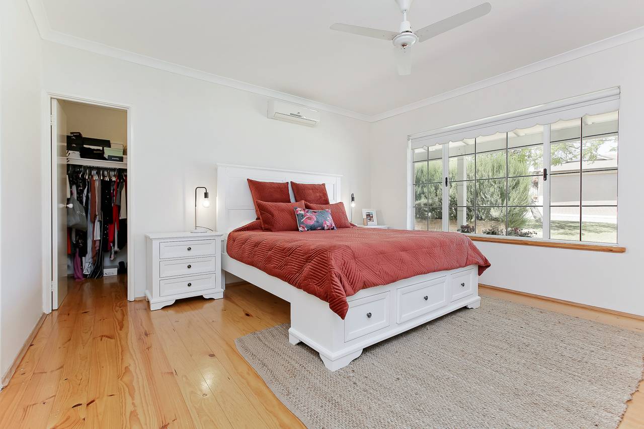 The large airconditioned master bedroom has a brilliant walk-in-robe and roomy ensuite bathroom attached which houses a large shower.