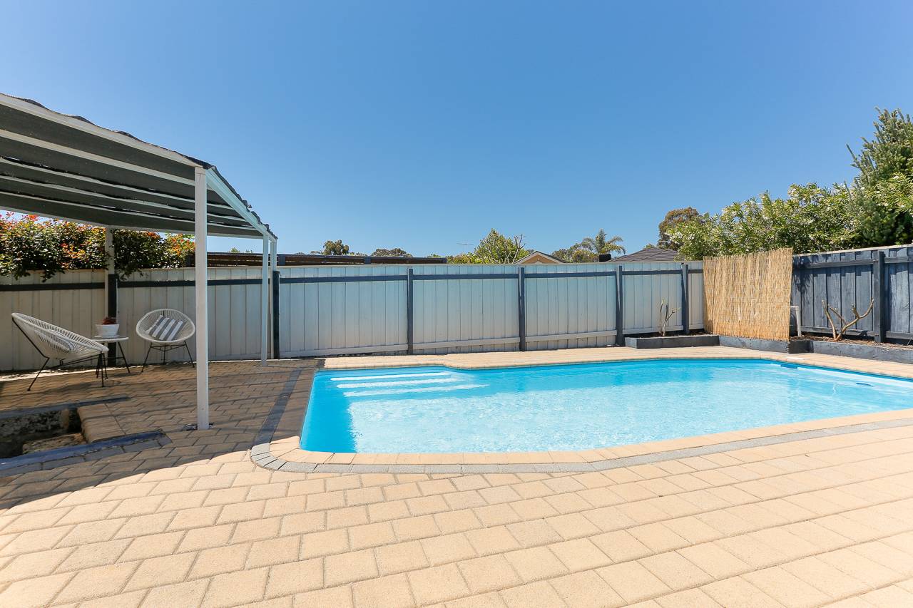 To the rear of the property is a huge low maintenance yard with below ground chlorinated pool. A small powered workshop is situated around the back left to the rear of the garage.