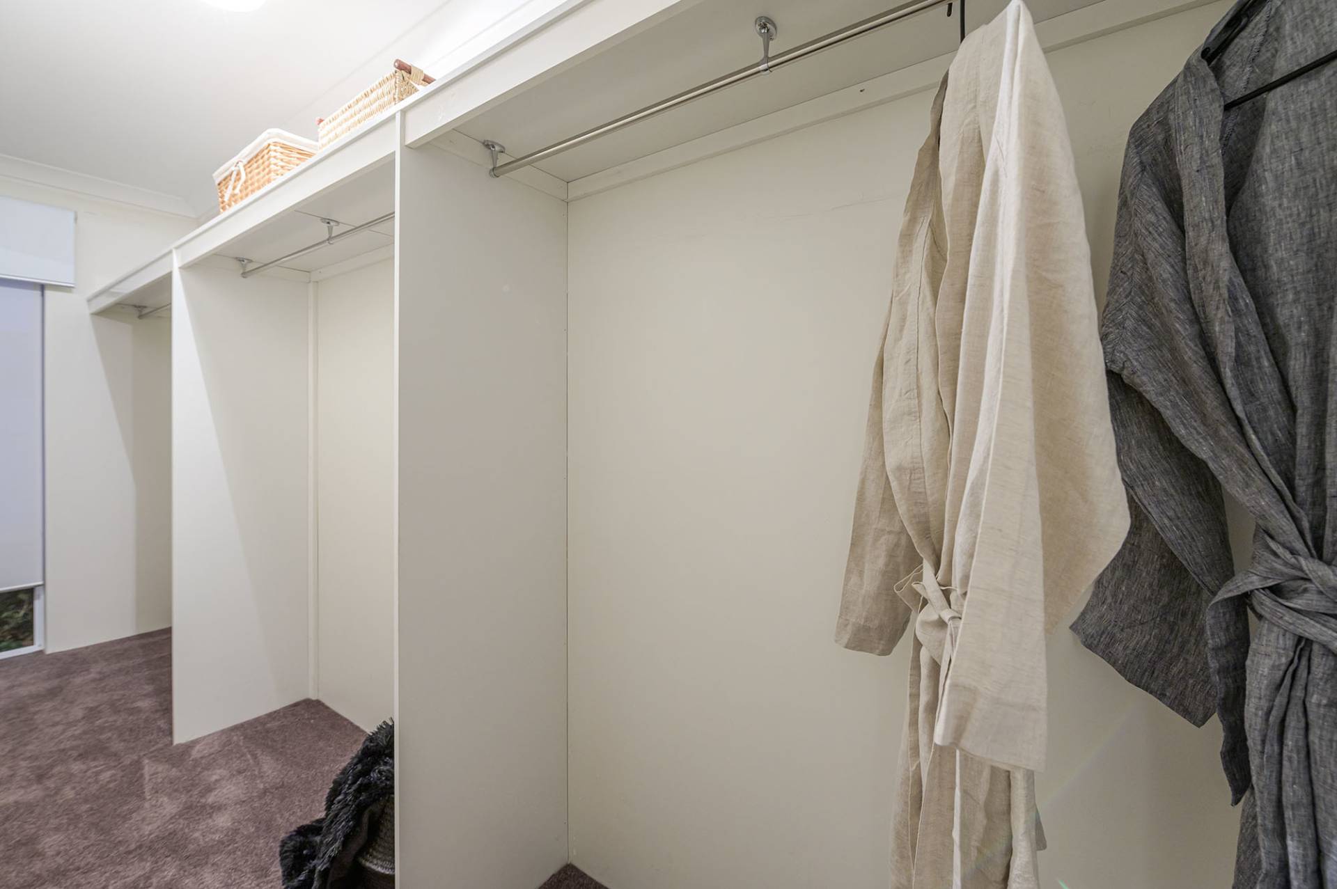 The master bedroom is at the front of the property, and will easily accommodate a king size bed. Behind the bed is the walk through robe with plenty of room for her clothing and shoes…and his, of course. There is also a split system A/C unit and sunscreen/block-out roller blinds to keep you comfortable.