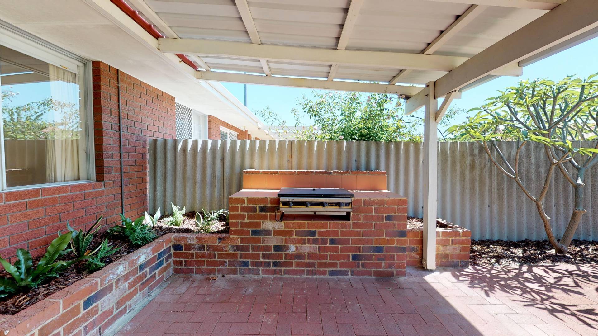 - covered patio with barbeque and paved area, perfect for entertaining in summer;