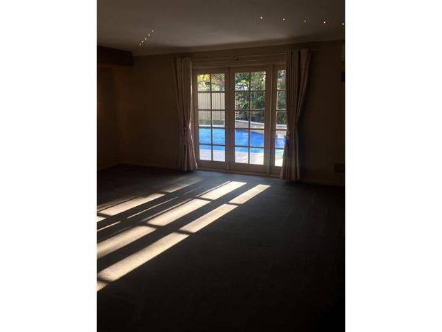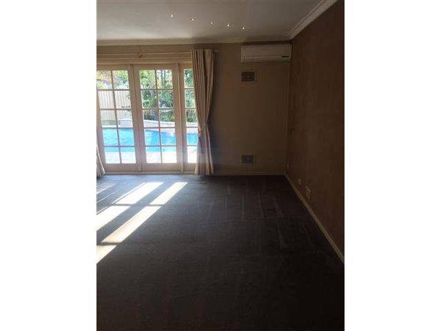 Bright and very spacious family room with reverse cycle air conditioning and double French doors opening onto pool and garden area.