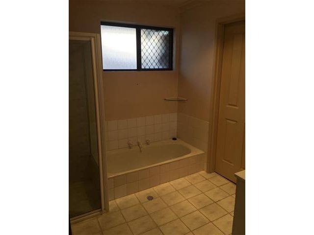 Lovely master bedroom with walk in robe and split reverse cycle air conditioning, connecting door to a spacious semi ensuite bathroom with vanity, glazed shower and bath.